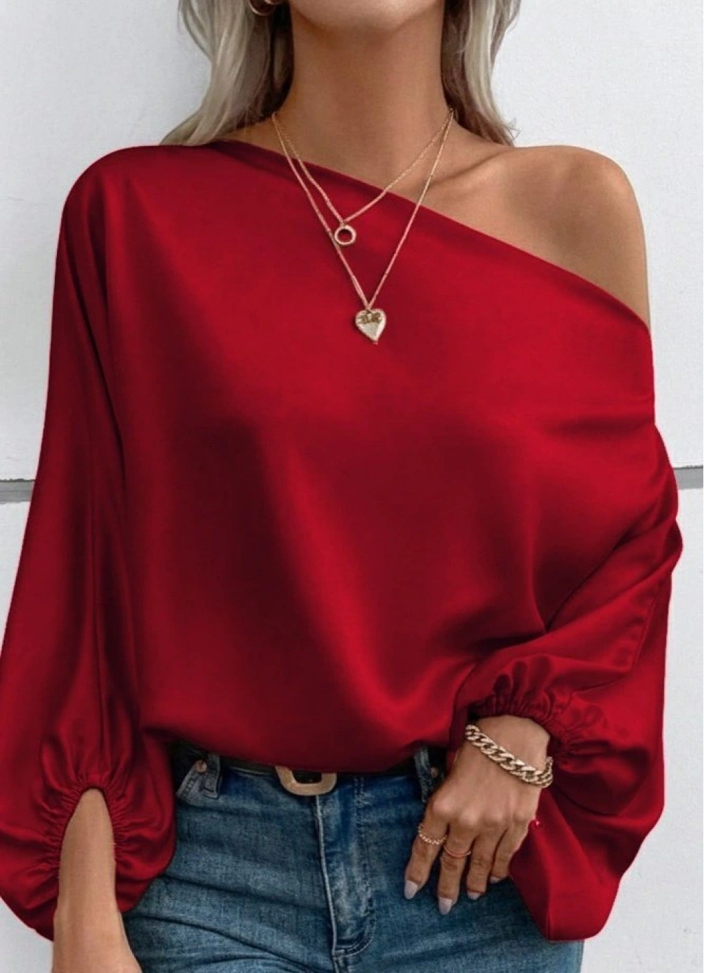 Kadın Tek Omuzu Açık Uzun Kollu Salaş Sandy Bluz