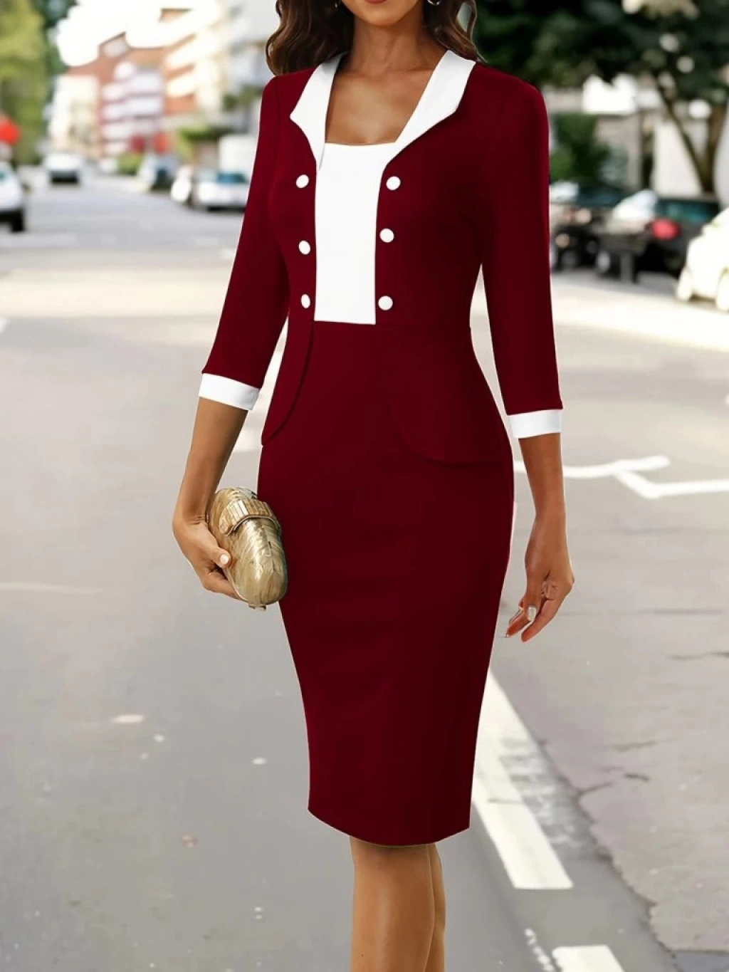 Kadın Truvakar Kol çift Renkli Düğmeli Kısa Ithal Krep Elbise