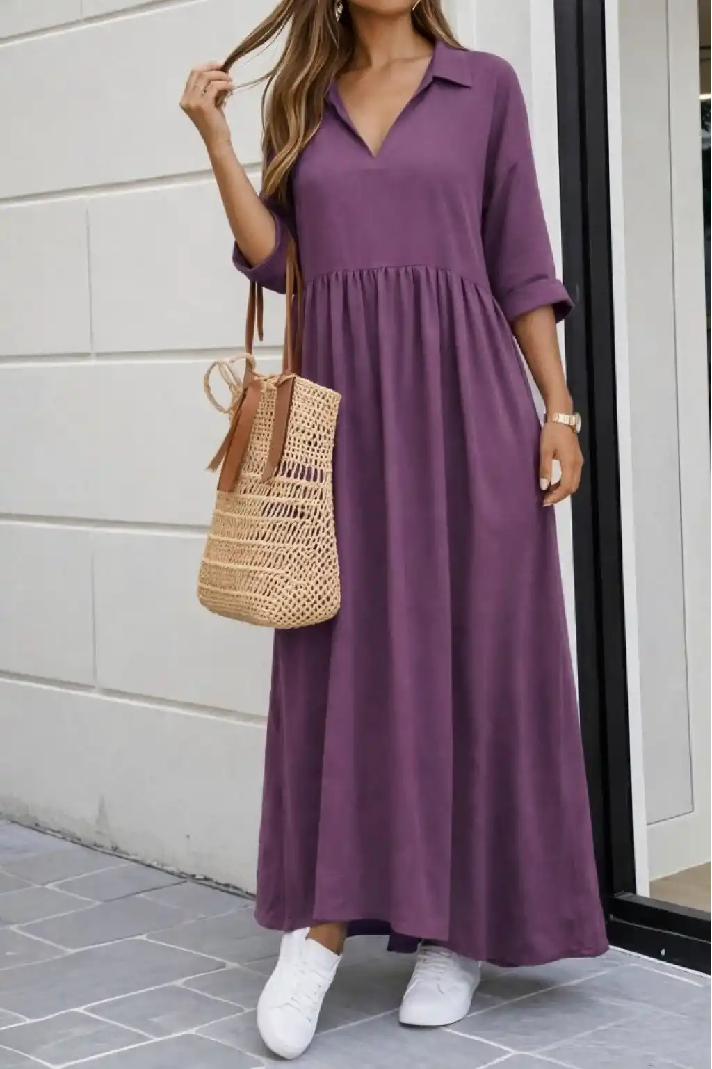 Kadın Truvakar Kollu V Yakalı Yırtmaçlı Uzun Aerobin Elbise