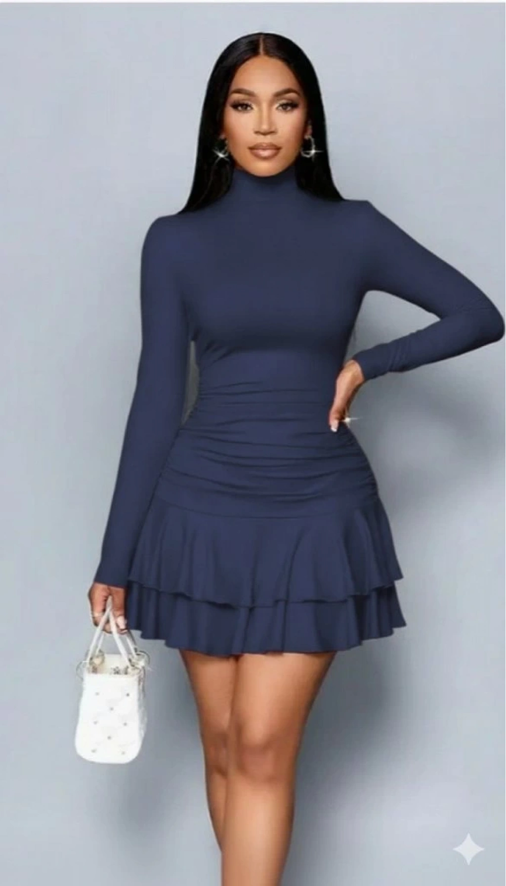 Kadın Uzun Kollu Balıkçı Yaka Mini Fırfırlı Sandy Elbise