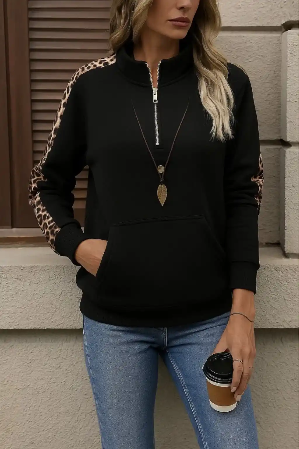 Kadın Uzun Kollu Balıkçı Yaka önden Fermuarlı Polar Bluz