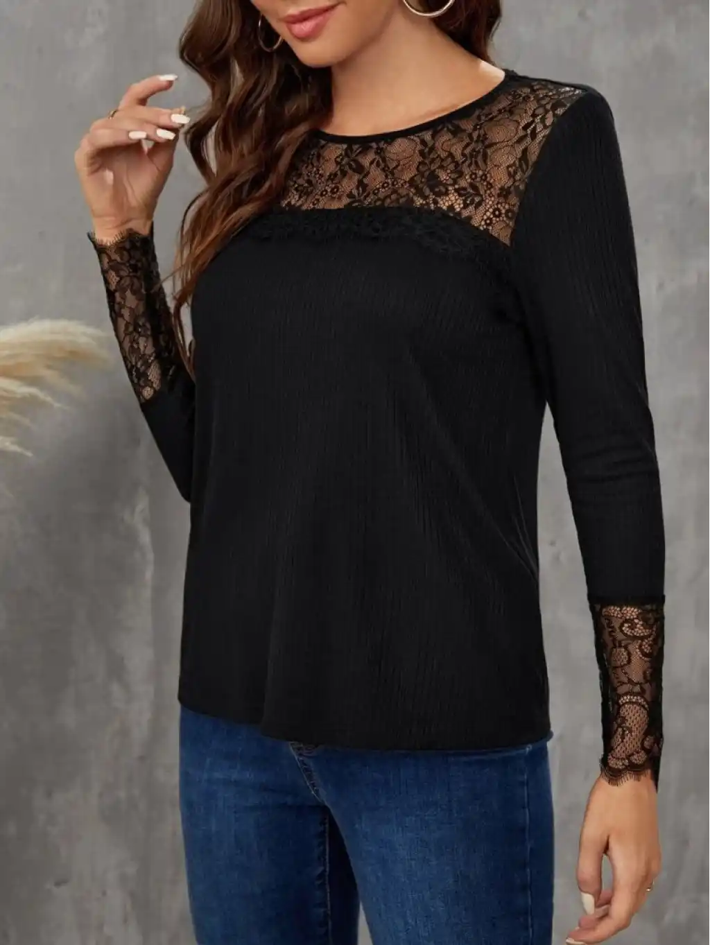Kadın Uzun Kollu Bisiklet Yaka Dantel Detaylı Burgu Bluz