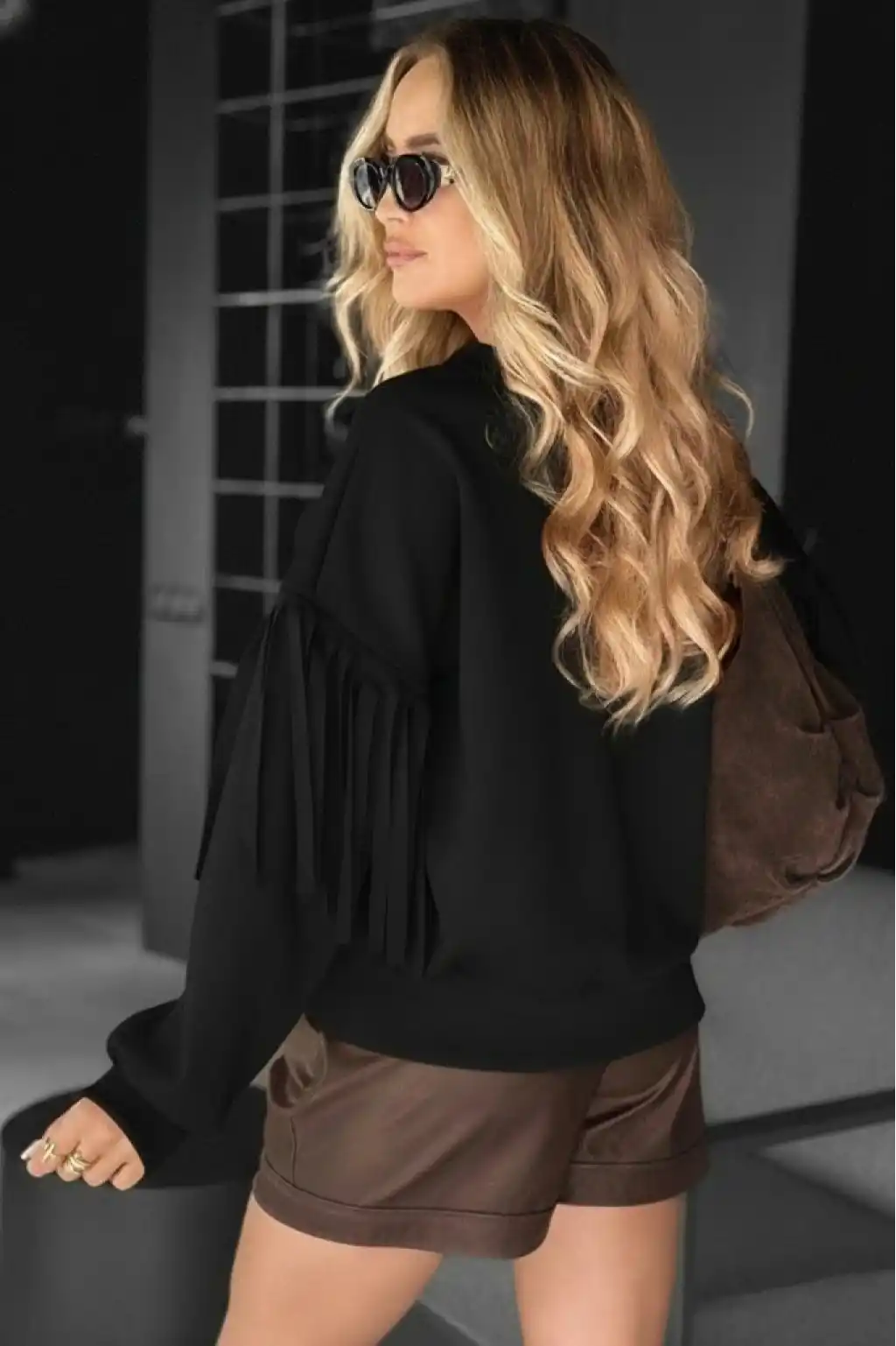 Kadın Uzun Kollu Bisiklet Yaka Kolları Püsküllü Modal Bluz