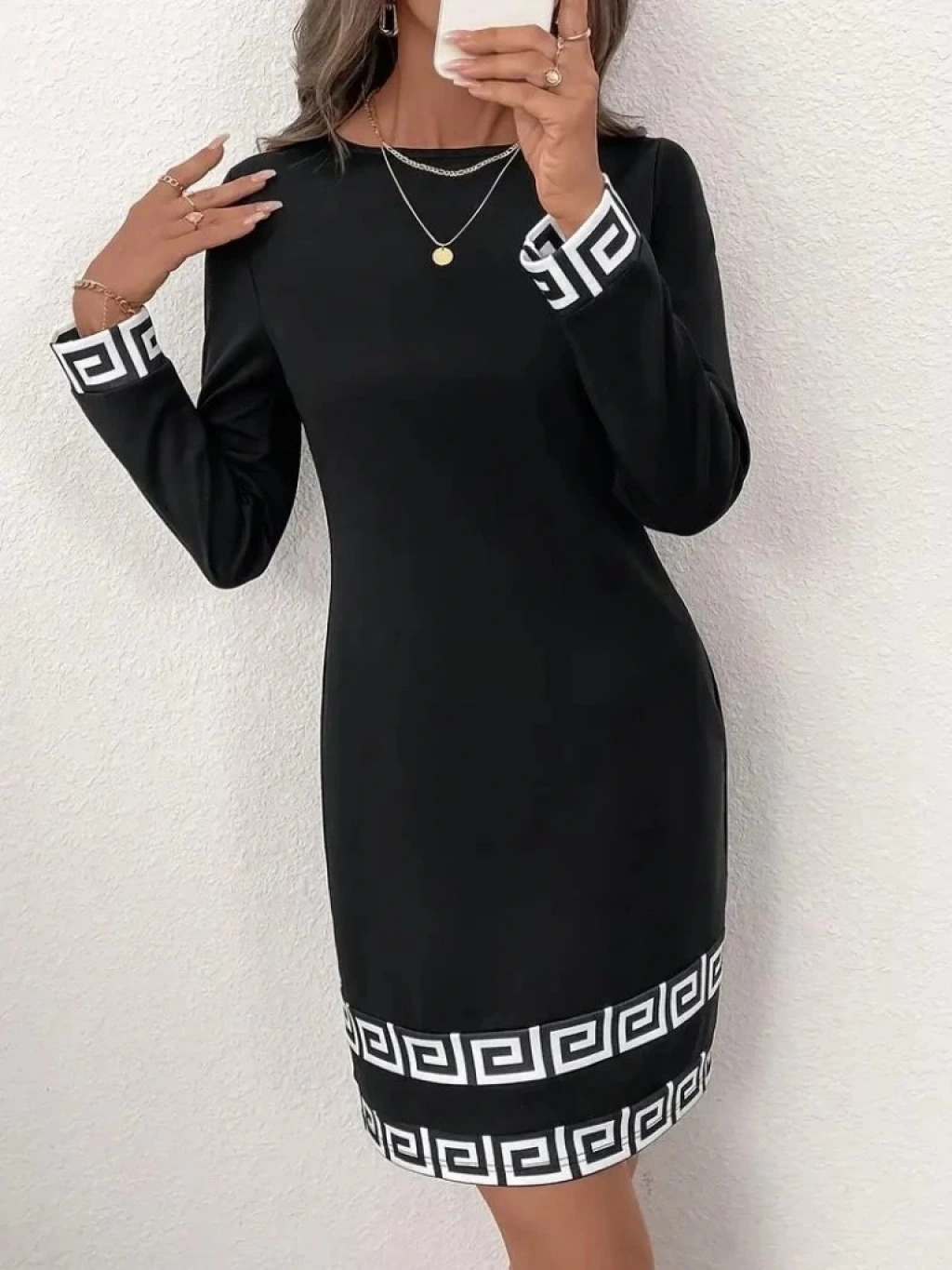 Kadın Uzun Kollu Bisiklet Yaka Mini Ithal Krep Elbise