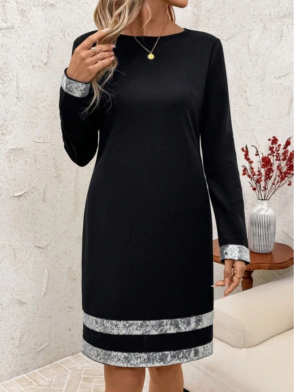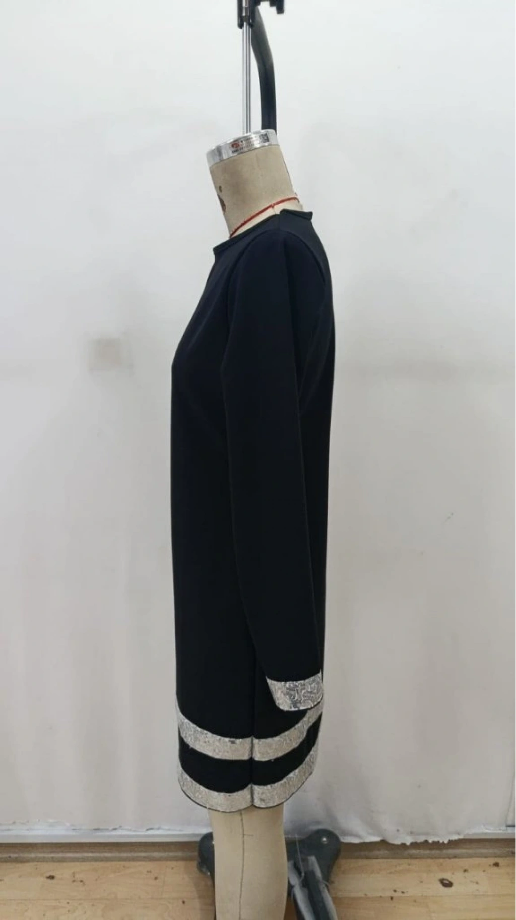 Kadın Uzun Kollu Bisiklet Yaka Mini Ithal Krep Elbise