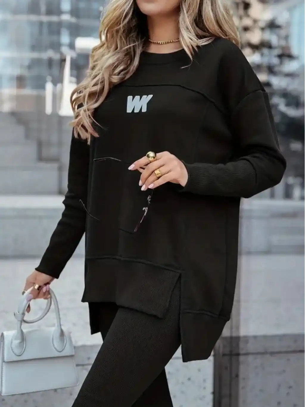 Kadın Uzun Kollu Bisiklet Yaka Nervurlu Viskon Iki Iplik Ve Tayt Pantolon Ikili Takım