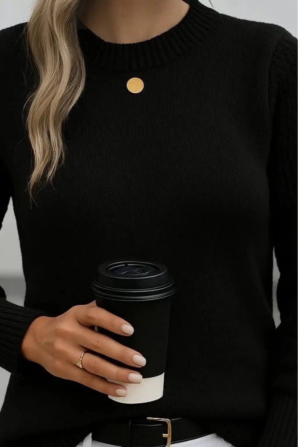 Kadın Uzun Kollu Bisiklet Yaka Triko Bluz