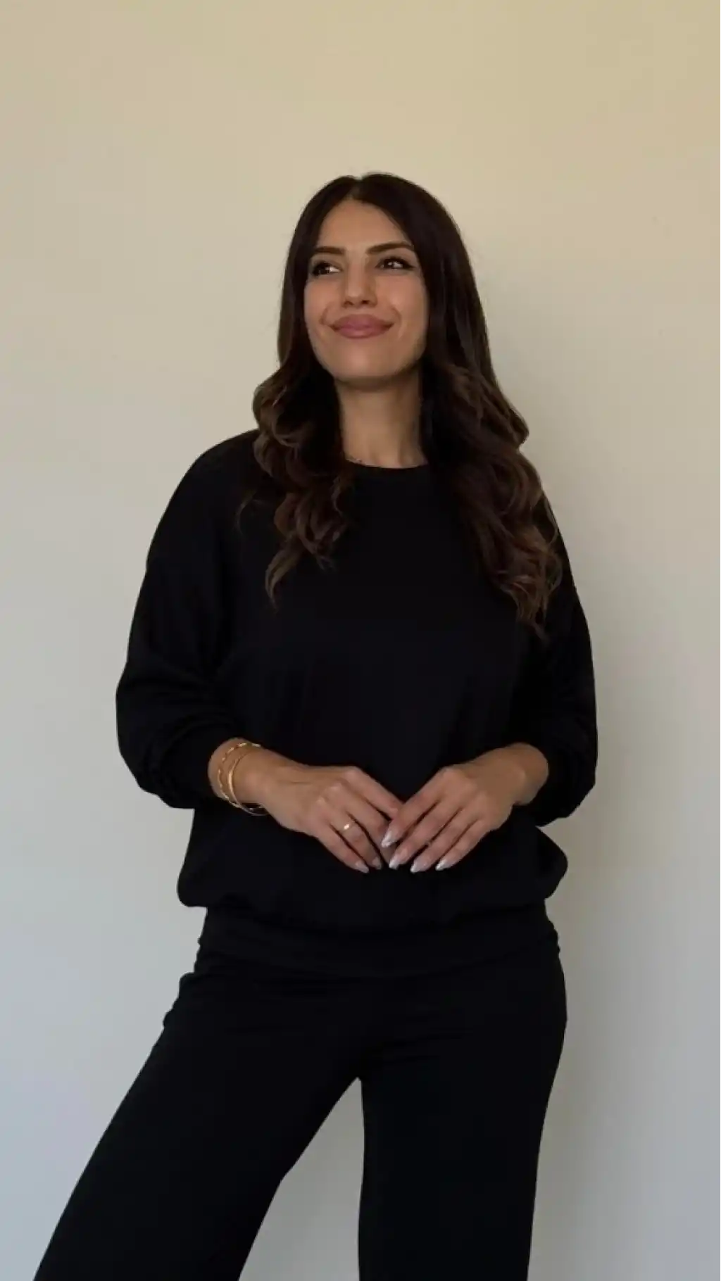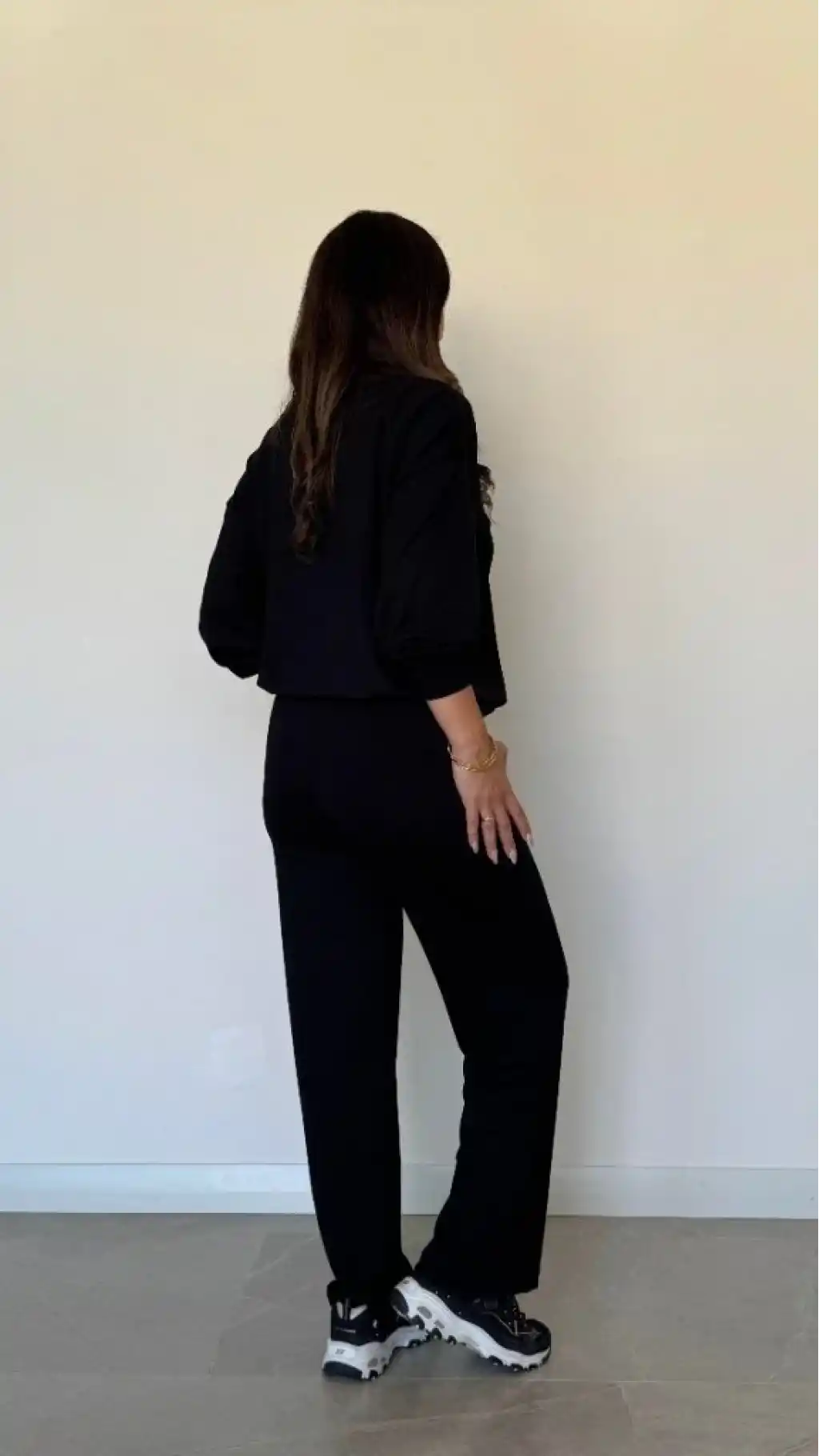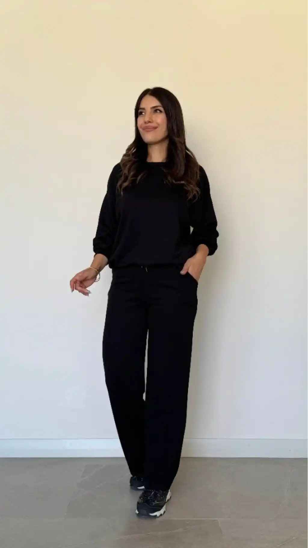 Kadın Uzun Kollu Bisiklet Yaka Viskon Iki Iplik Bluz Ve Pantolon Ikili Takım