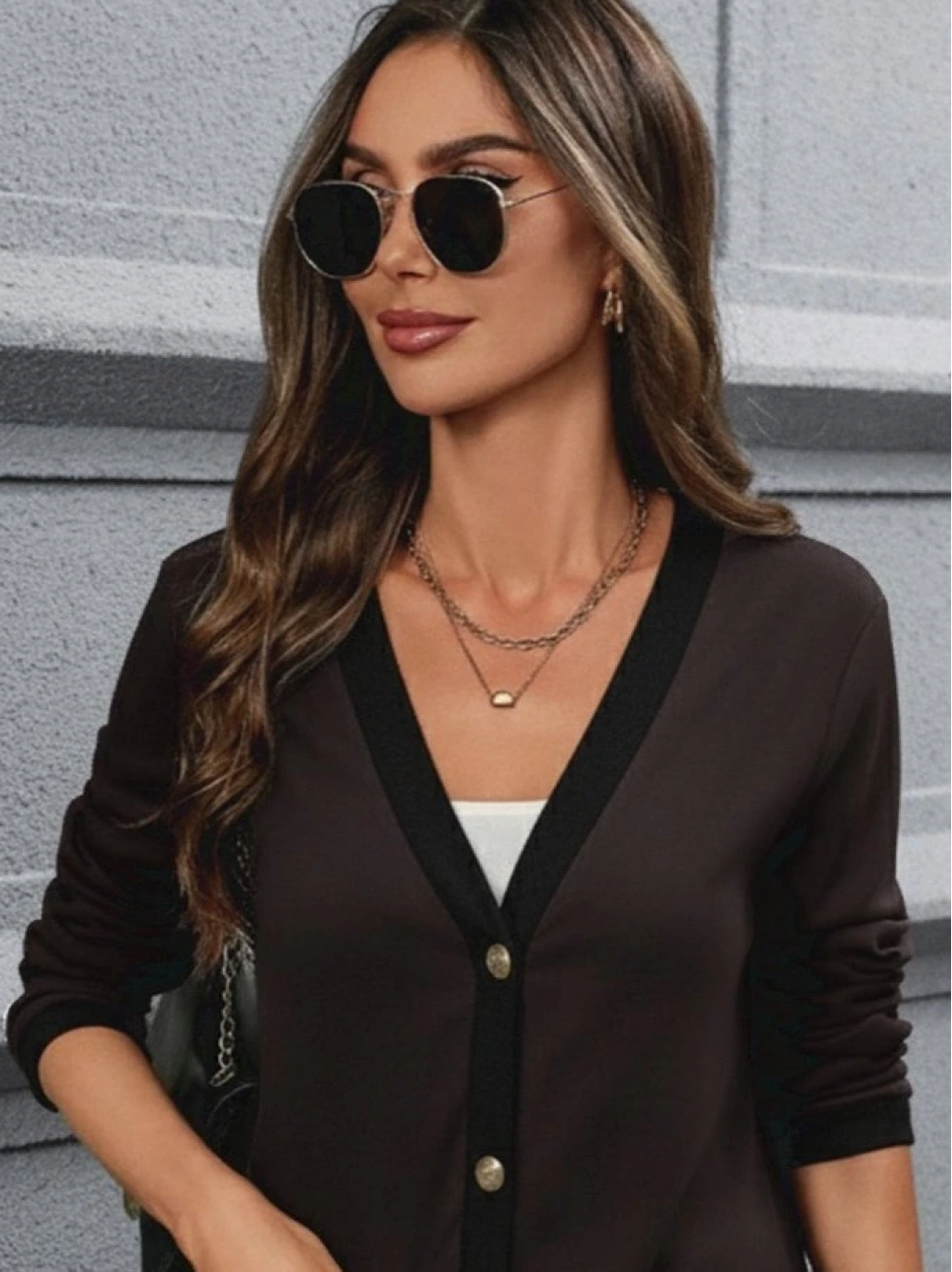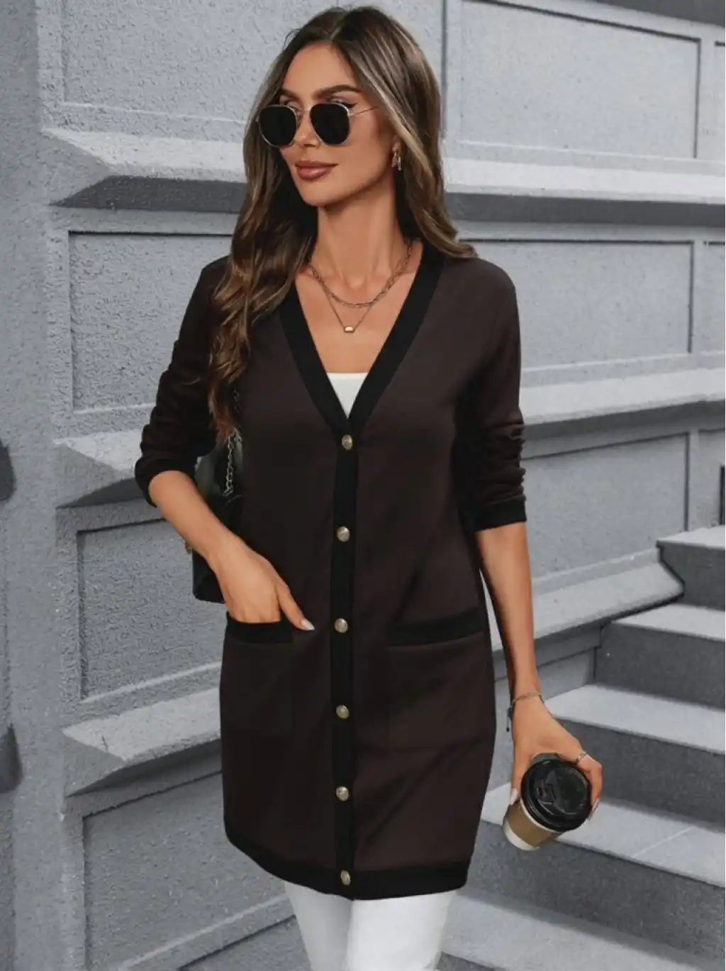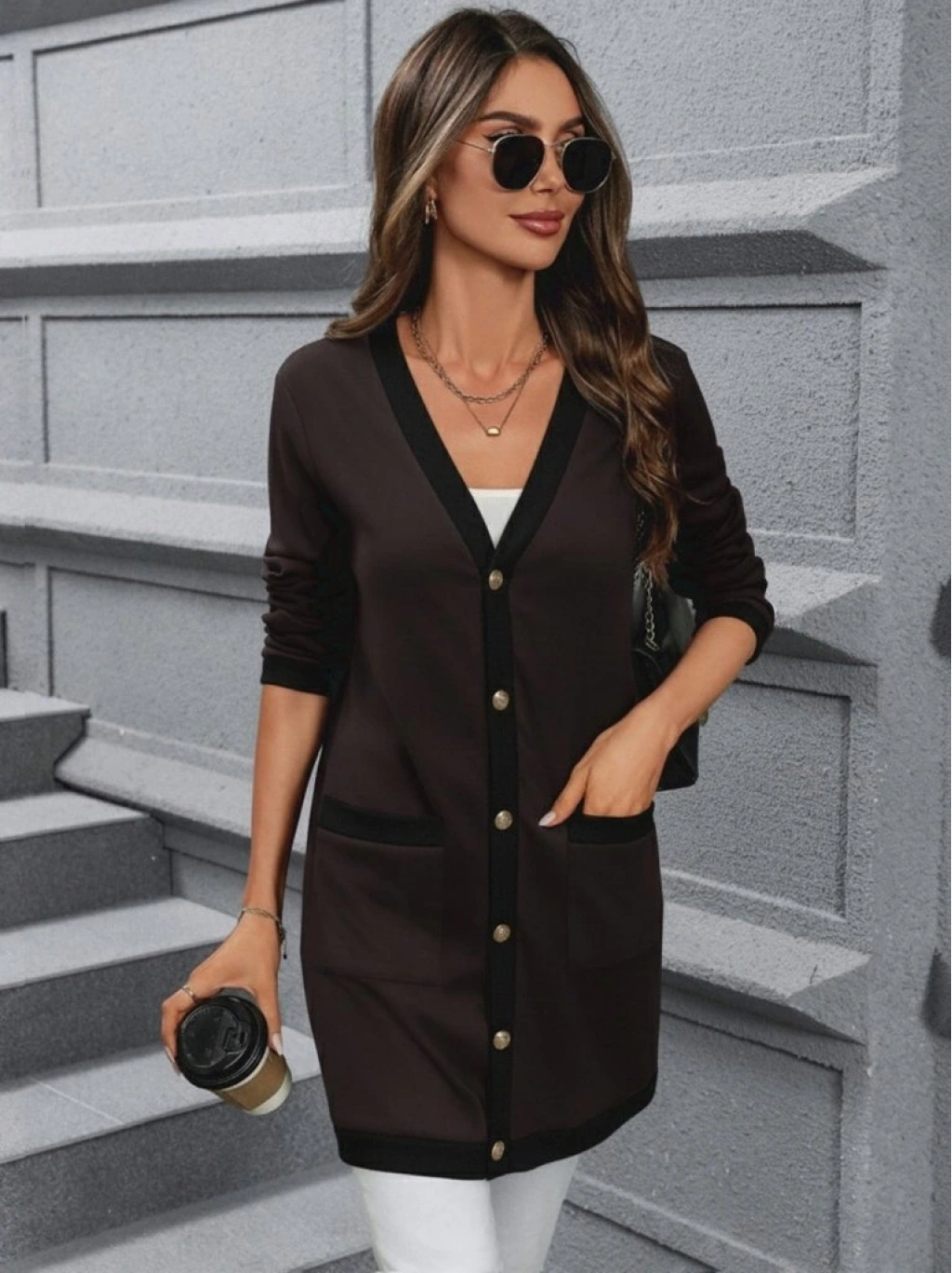 Kadın Uzun Kollu Cepli önden Düğmeli Uzun Modal Ceket Hırka
