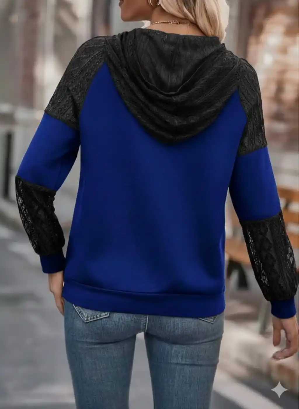 Kadın Uzun Kollu Dantelli Kapşonlu Viskon Iki Iplik Bluz