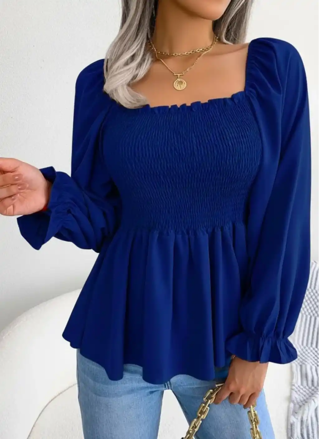 Kadın Uzun Kollu Geometrik Yakalı Gipe Detaylı Krep Bluz