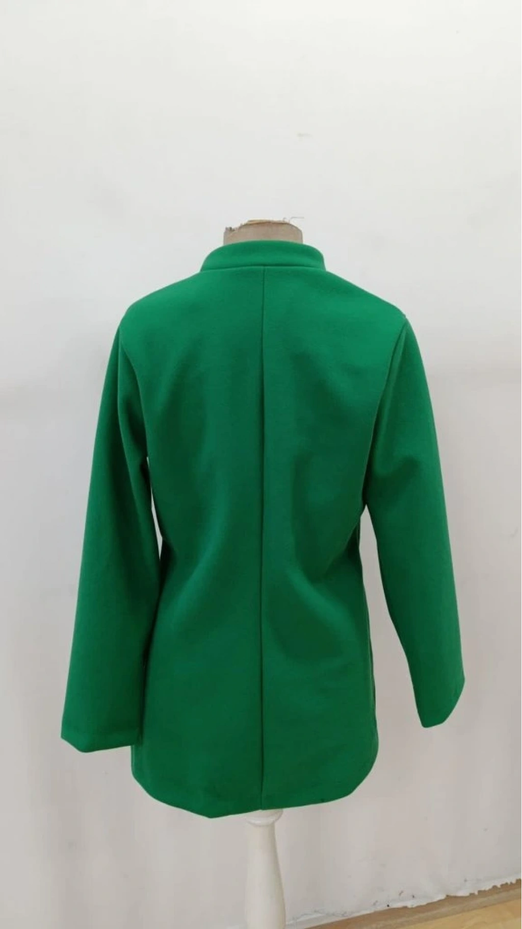 Kadın Uzun Kollu Hakim Yakalı önden Düğmeli Cep Detaylı Kısa Taba Kaşe Kaban