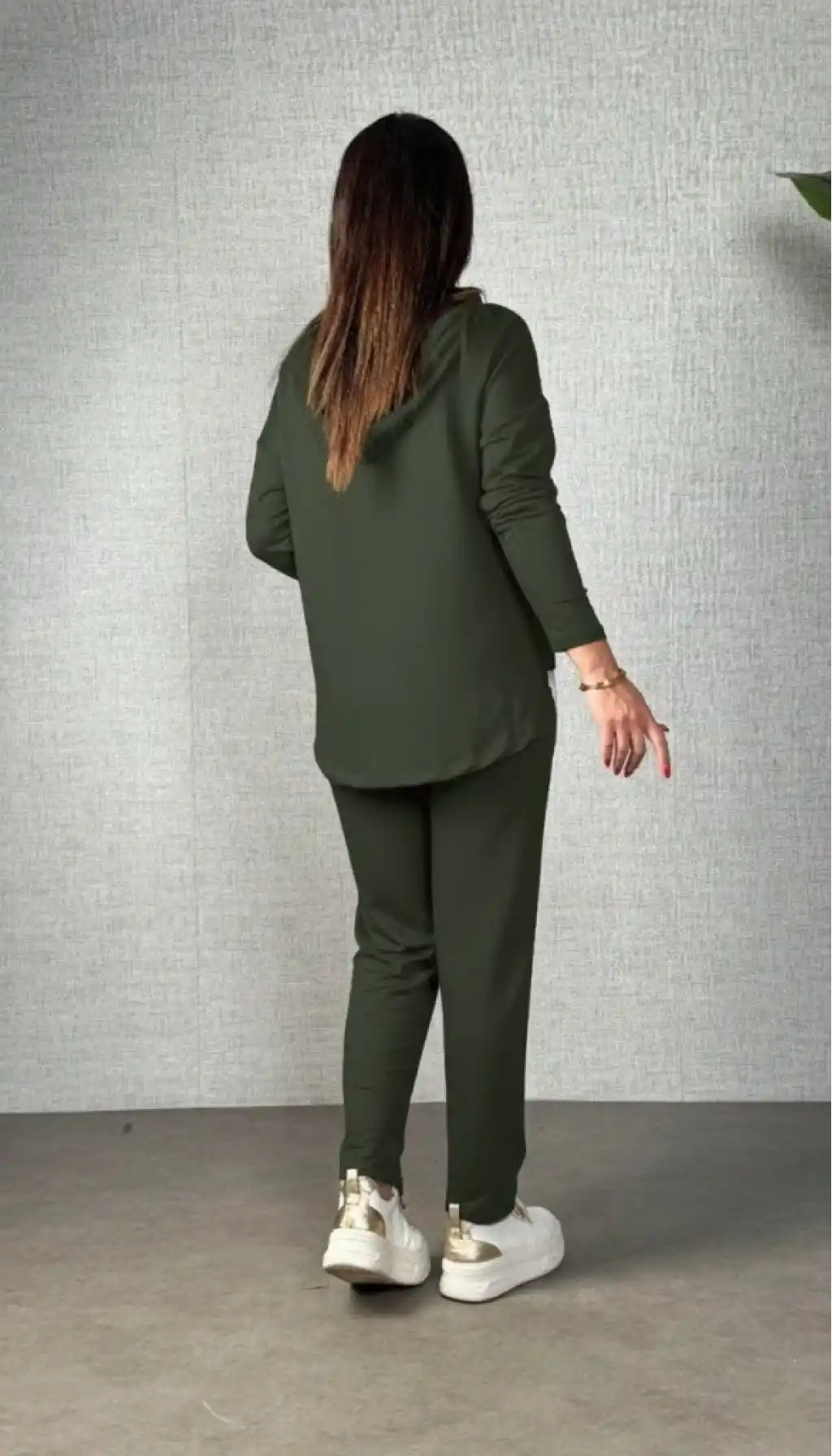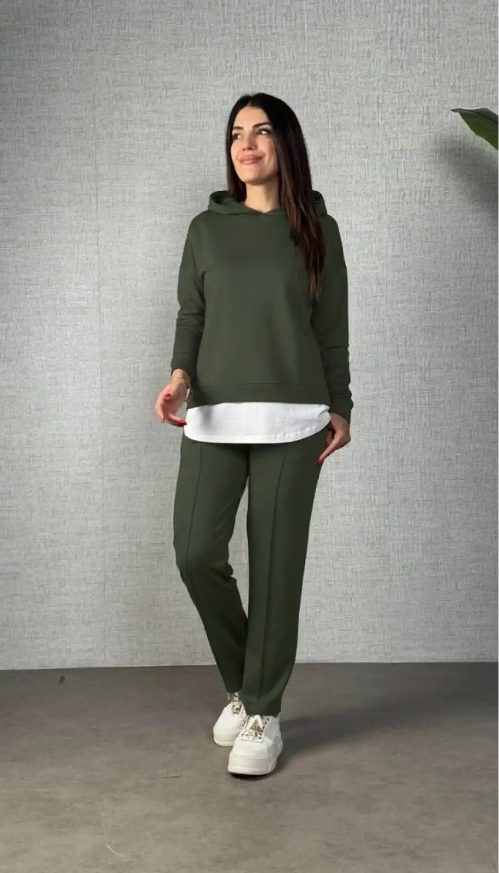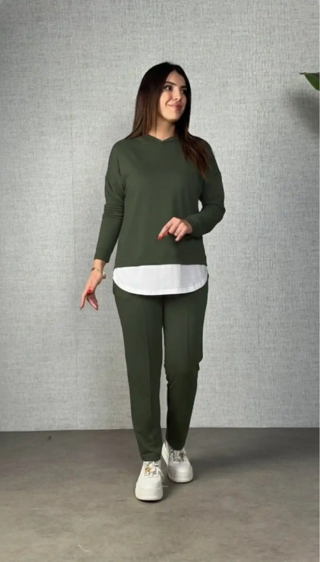 Kadın Uzun Kollu Kapşonlu Bağcıklı Viskon Iki Iplik Bluz Ve Pantolon Ikili Takım