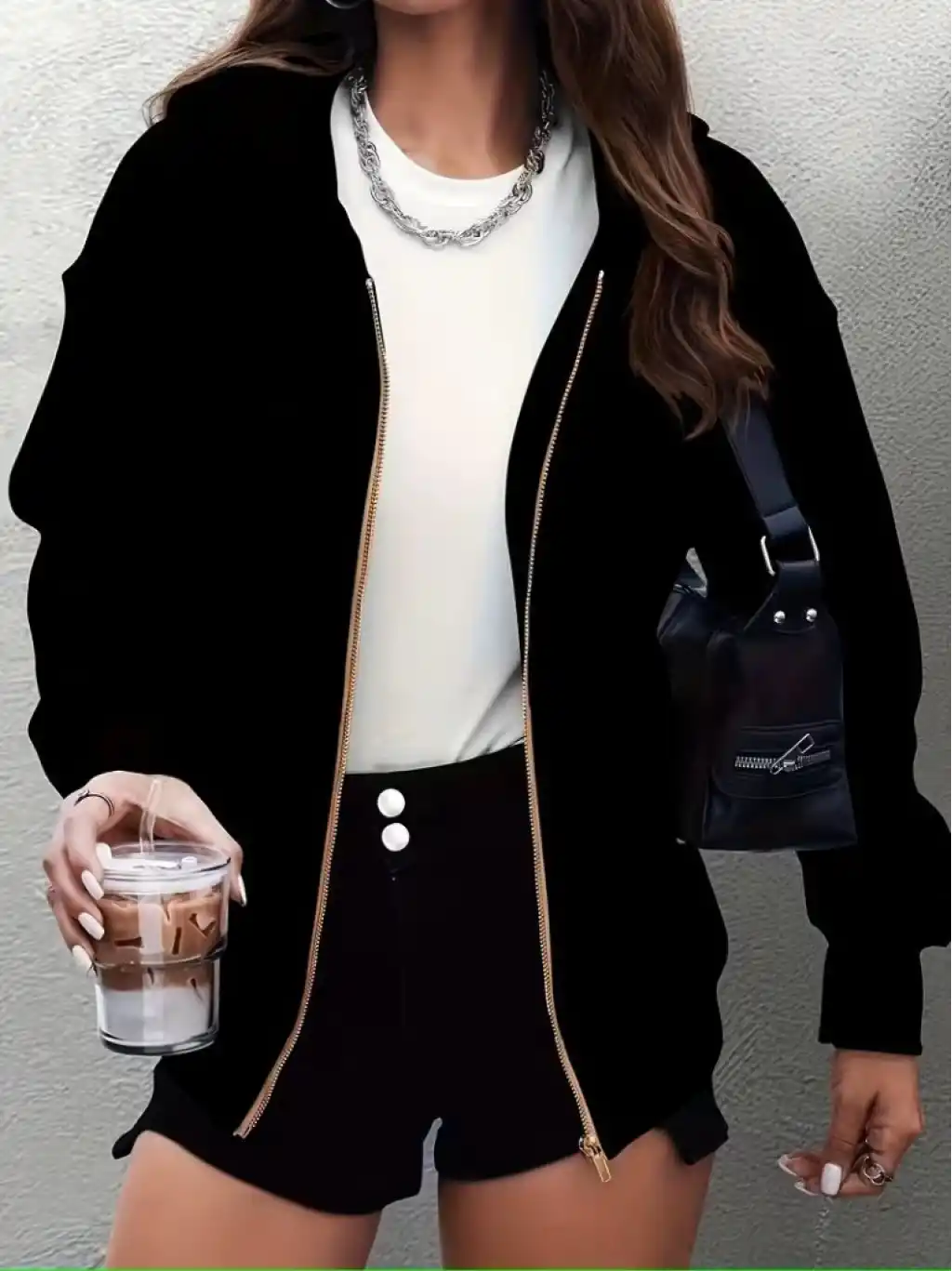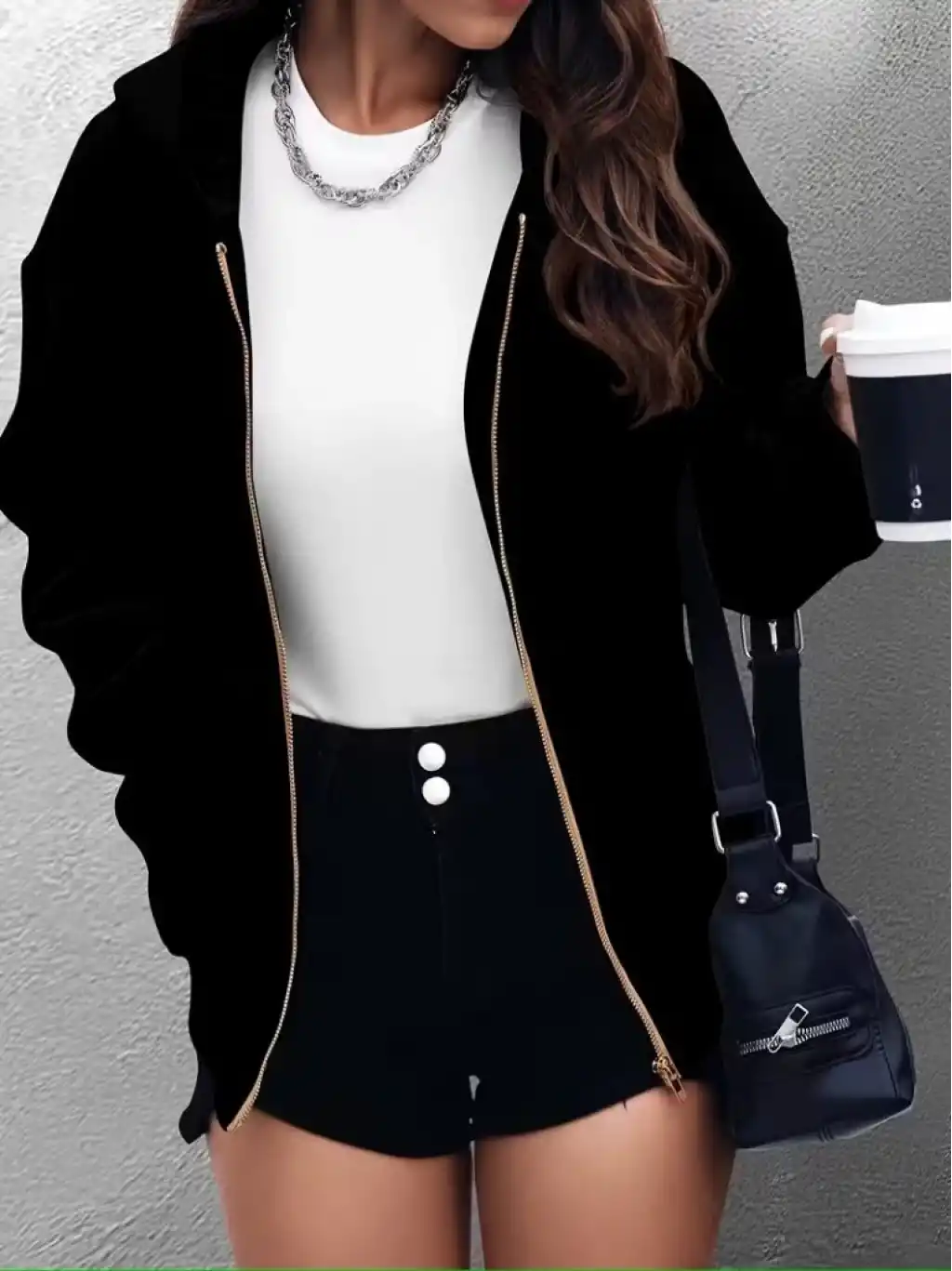 Kadın Uzun Kollu Kapşonlu Fermuarlı önden Cep Detaylı şardonlu Iki Iplik Ceket