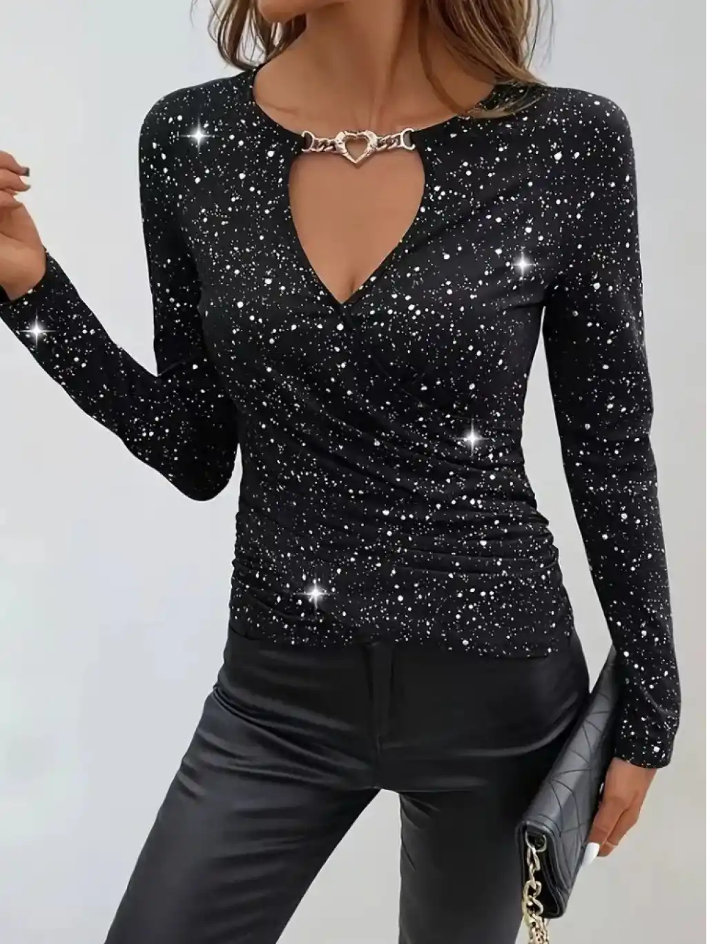 Kadın Uzun Kollu Kruvaze Yakalı Aksesuarlı Dalgıç Bluz