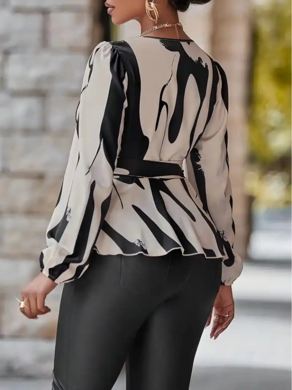 Kadın Uzun Kollu Kruvaze Yakalı Yandan Bağlamalı Kısa Beli Kuşaklı Modal Bluz