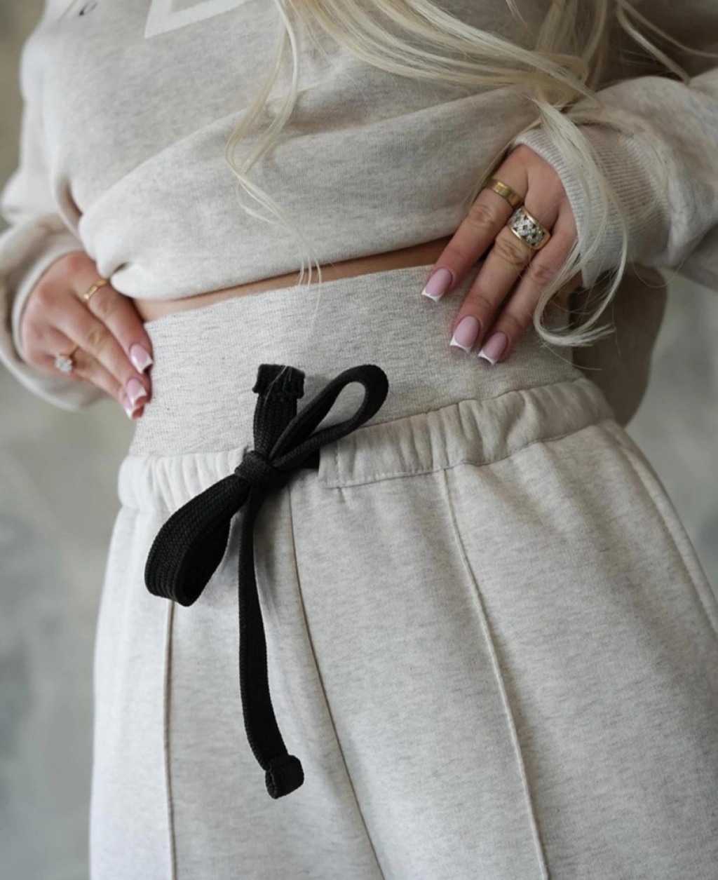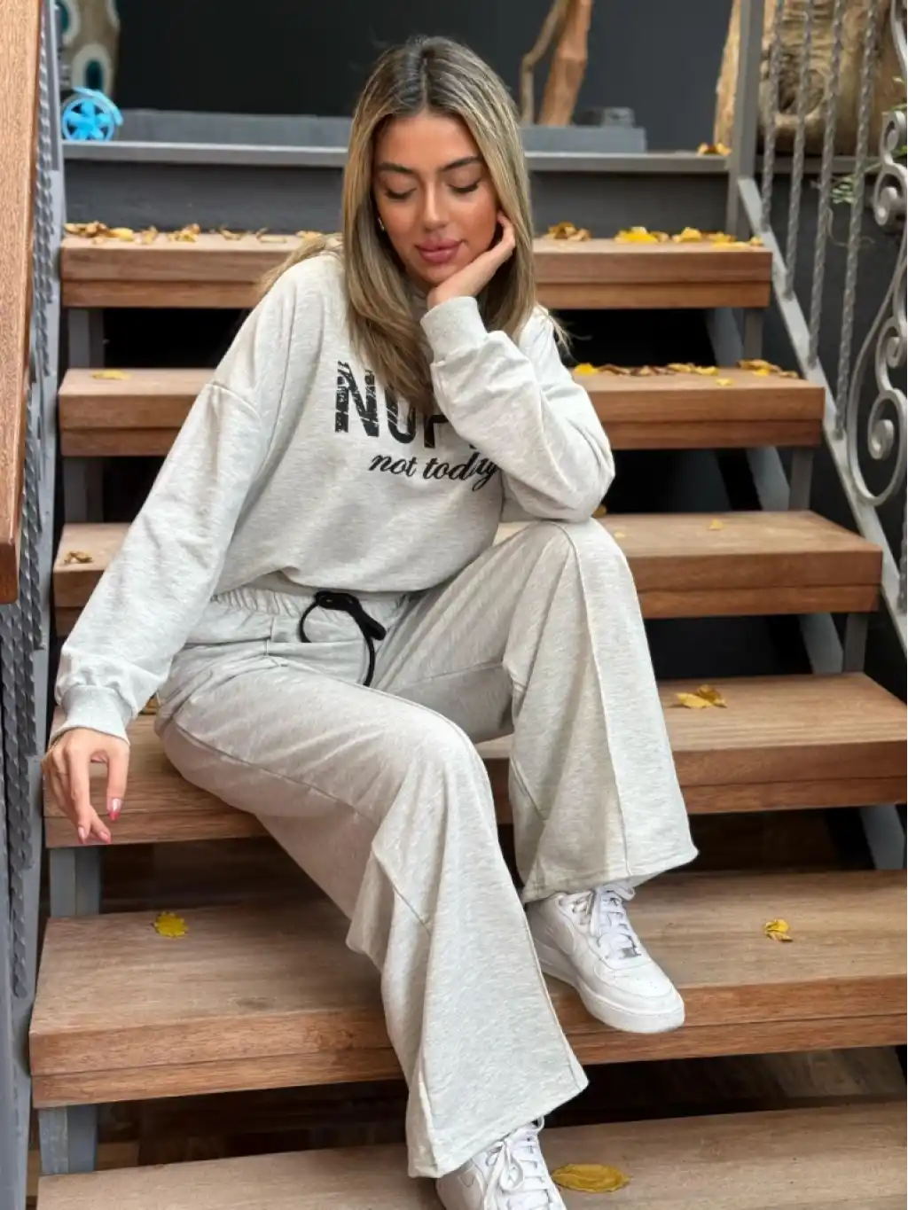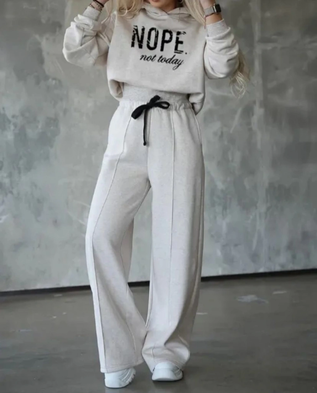 Kadın Uzun Kollu Nope Baskılı Beli Ribanalı Ikili Takım
