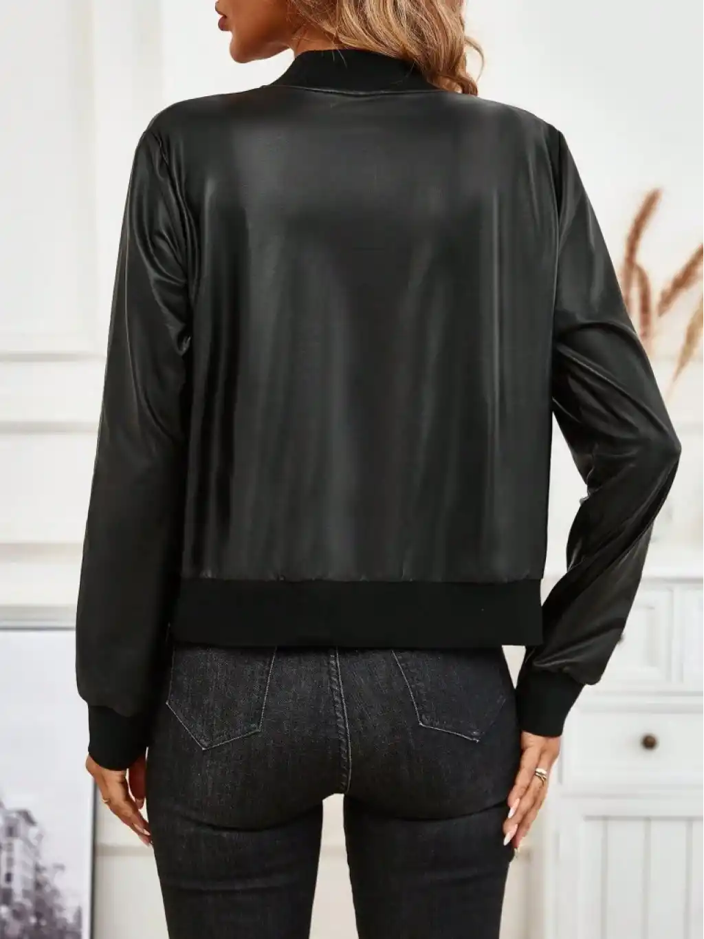 Kadın Uzun Kollu önden Fermuarlı Deri Kısa Ceket