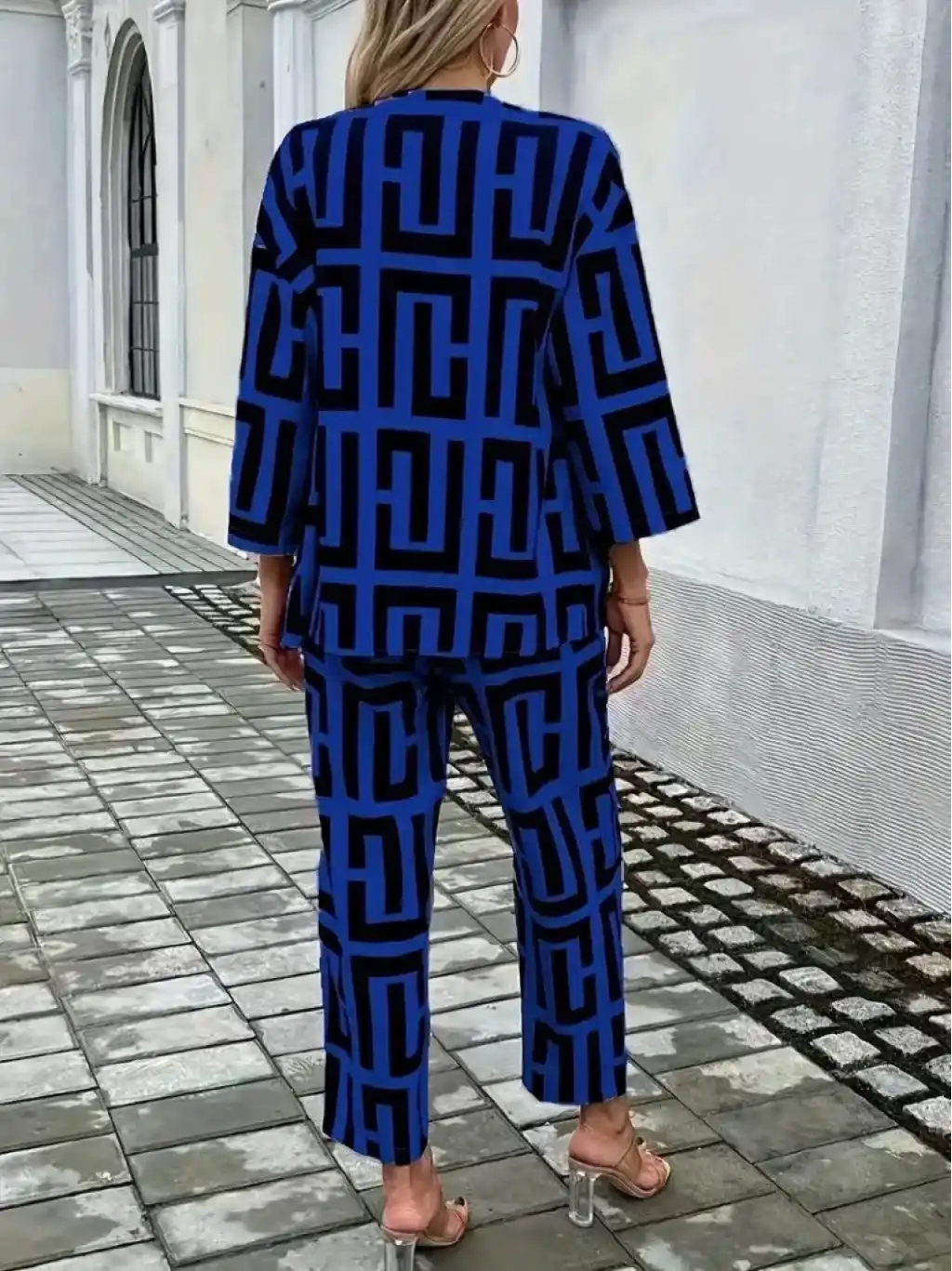 Kadın Uzun Kollu önü Açık Desenli Iki Iplik Ceket Ve Pantolon Ikili Takım
