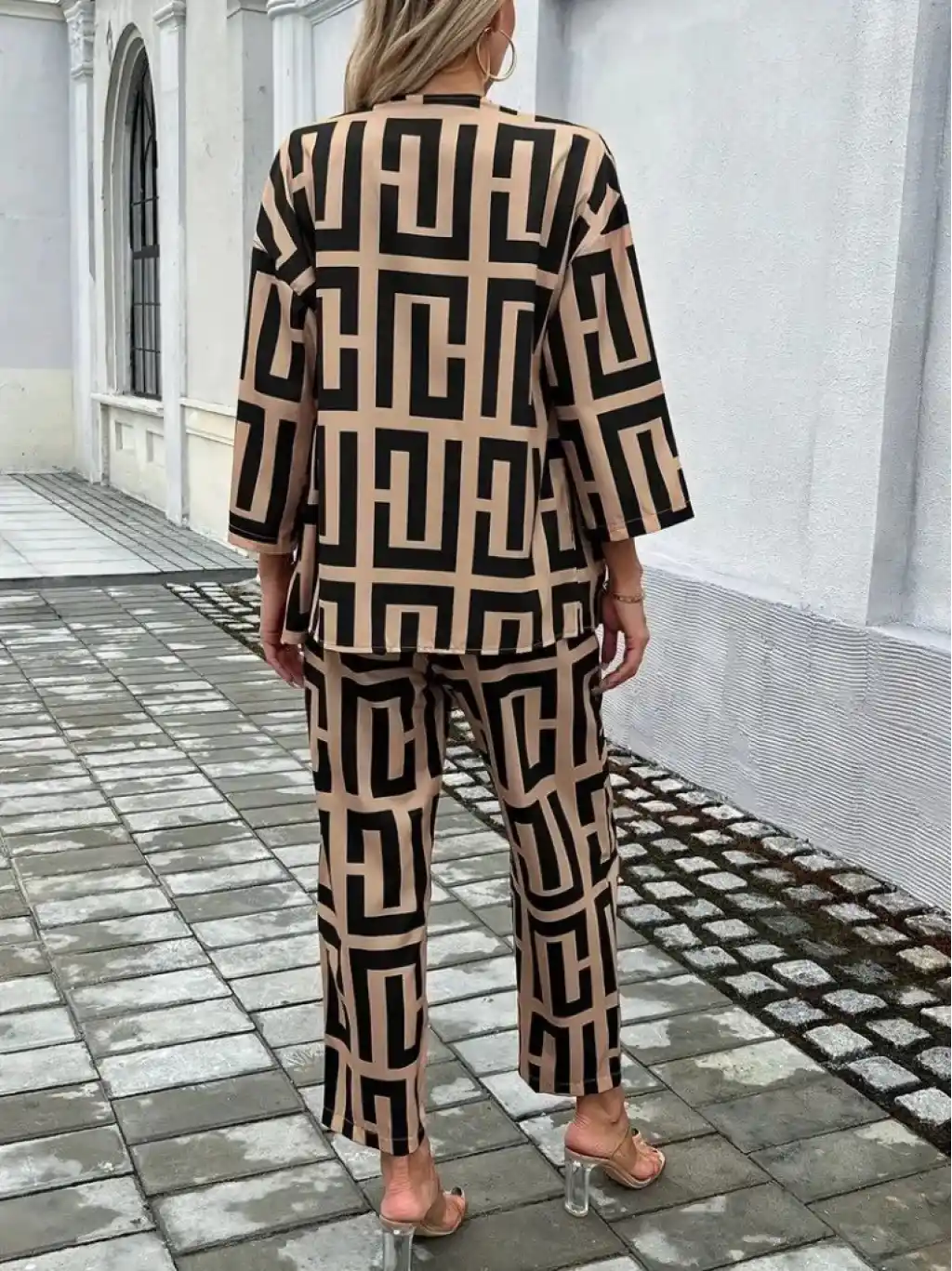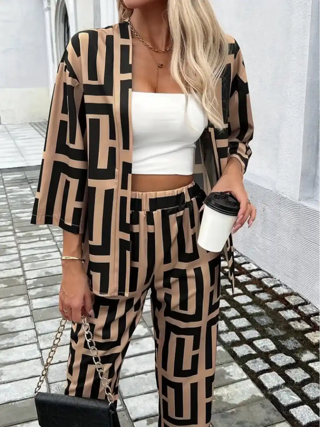 Kadın Uzun Kollu önü Açık Desenli Iki Iplik Ceket Ve Pantolon Ikili Takım