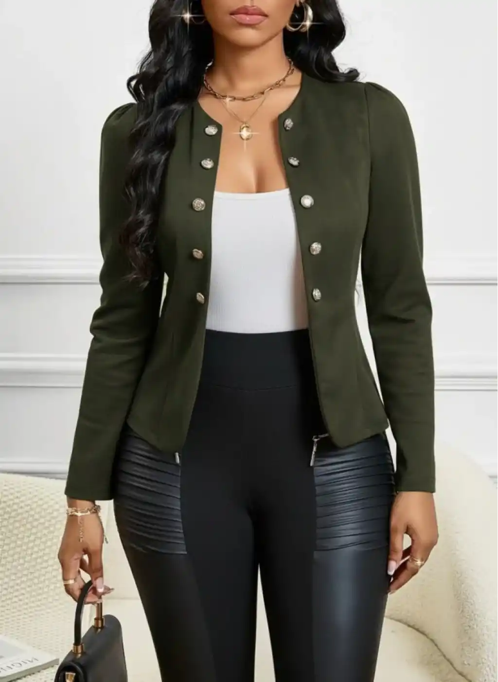 Kadın Uzun Kollu önü Açık Düğmeli Kısa Süet Ceket