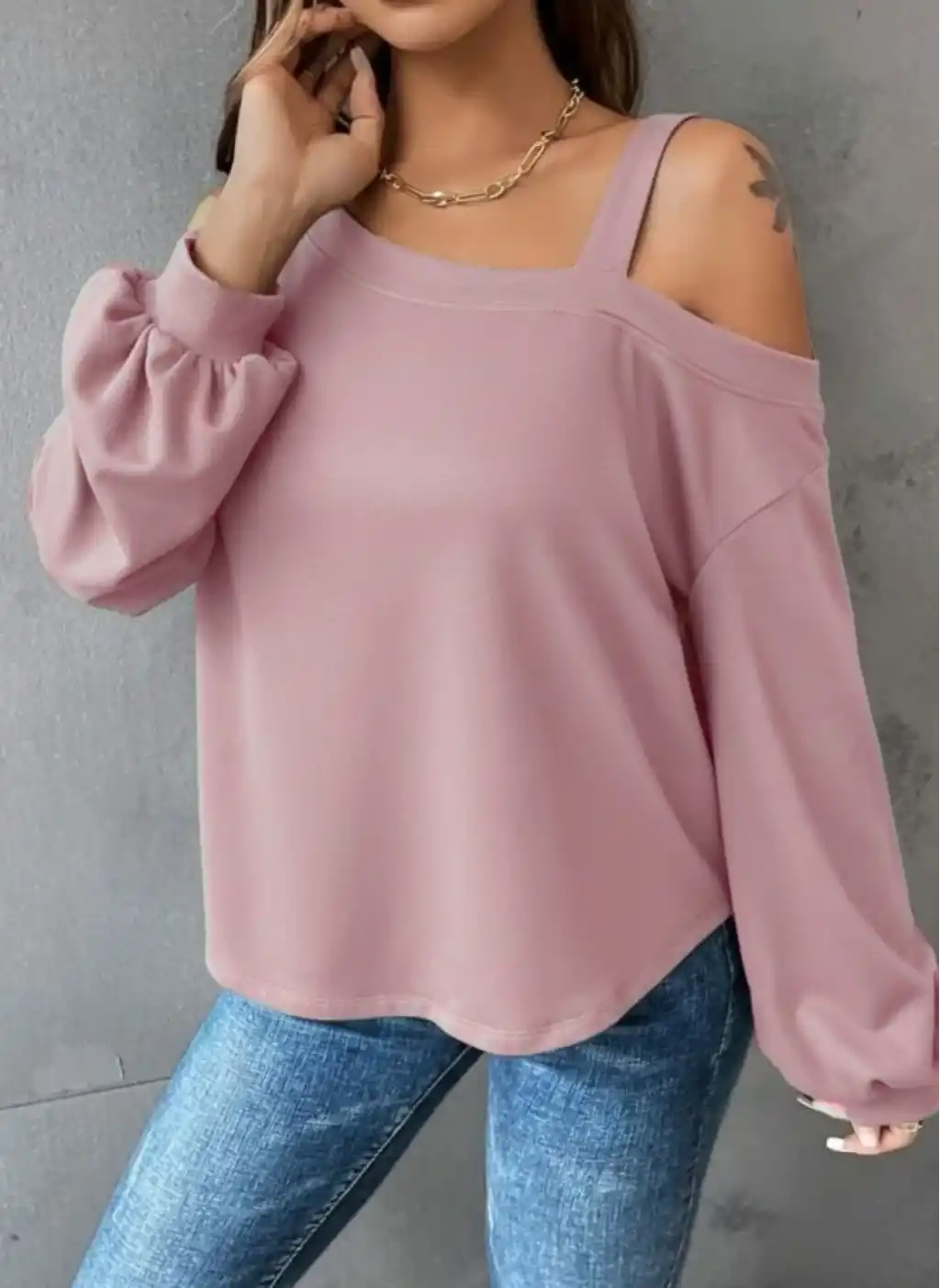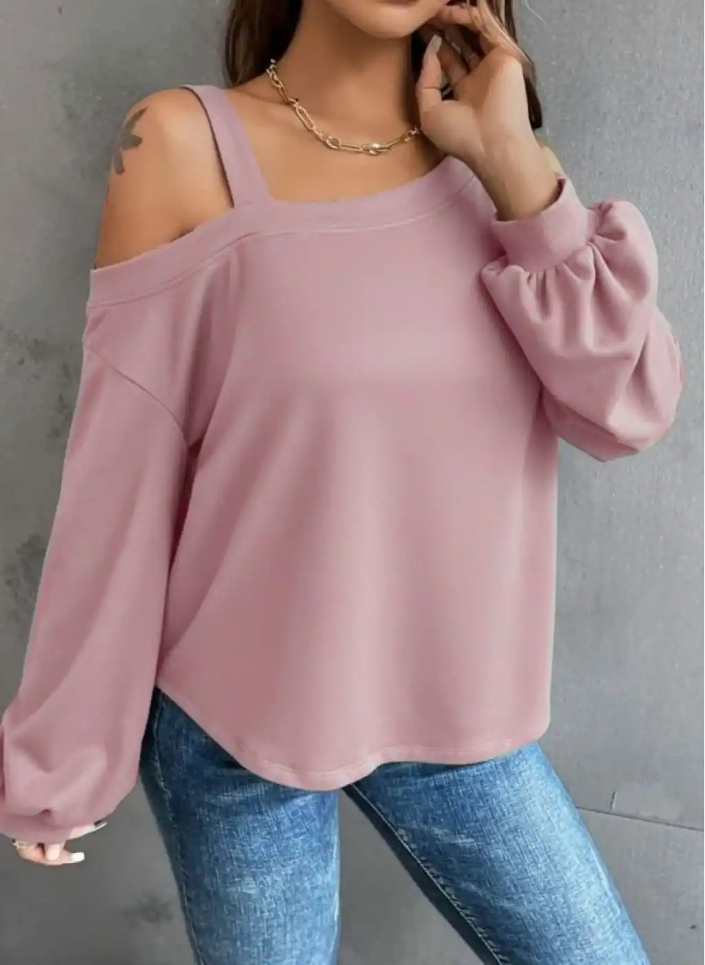 Kadın Uzun Kollu Tek Omuz Askı Detay Salaş Dalgıç Bluz