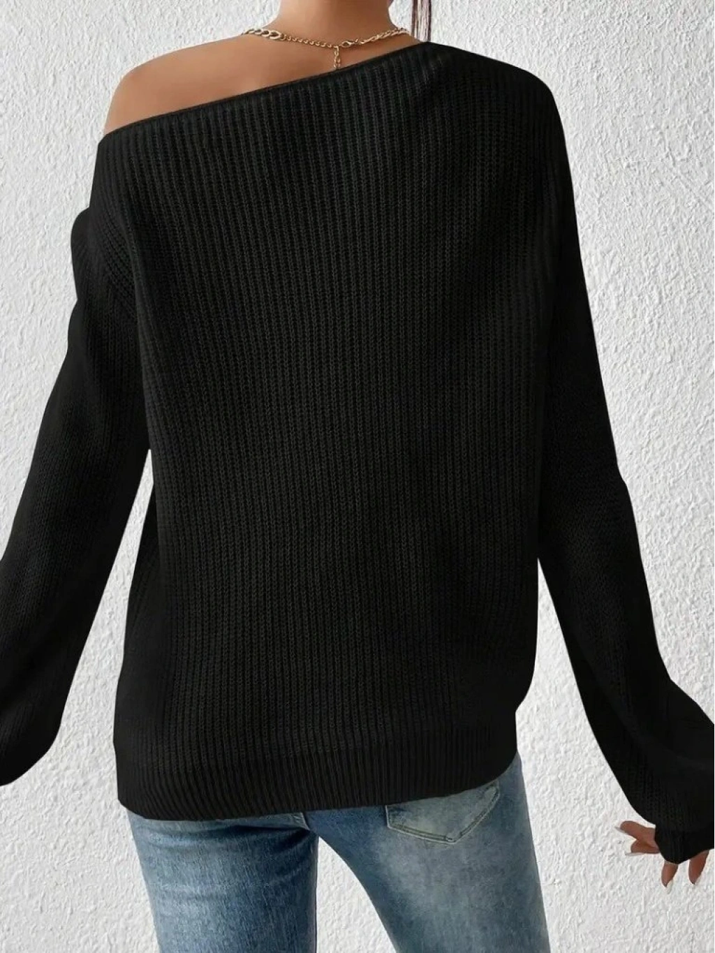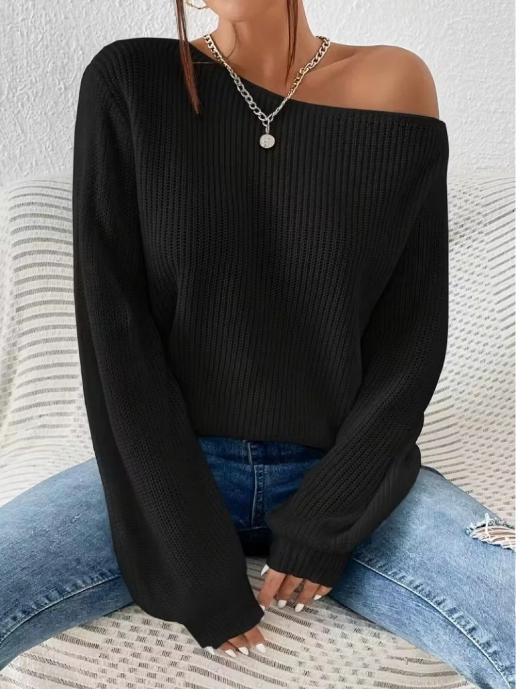 Kadın Uzun Kollu Tek Omuzu Açık Detaylı Triko Bluz