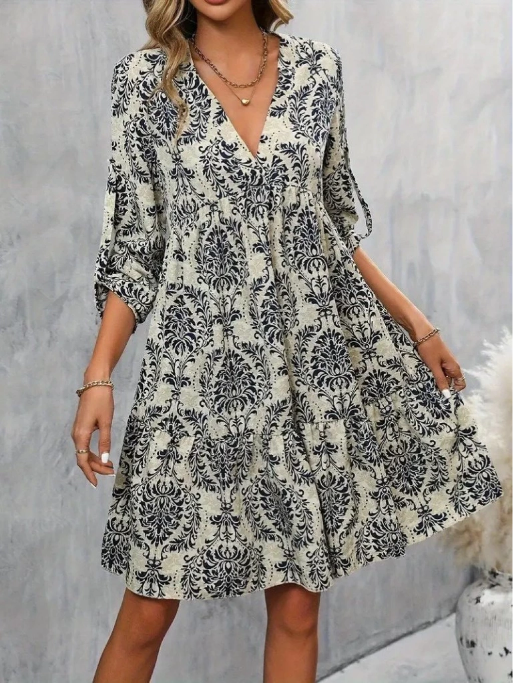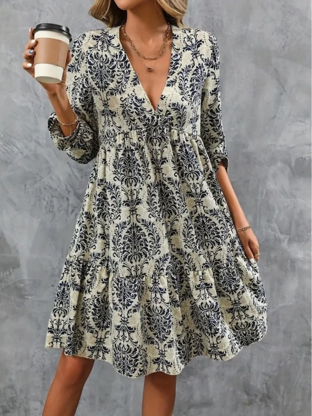 Kadın Uzun Kollu V Yakalı Fırfırlı Mini Süprem Elbise