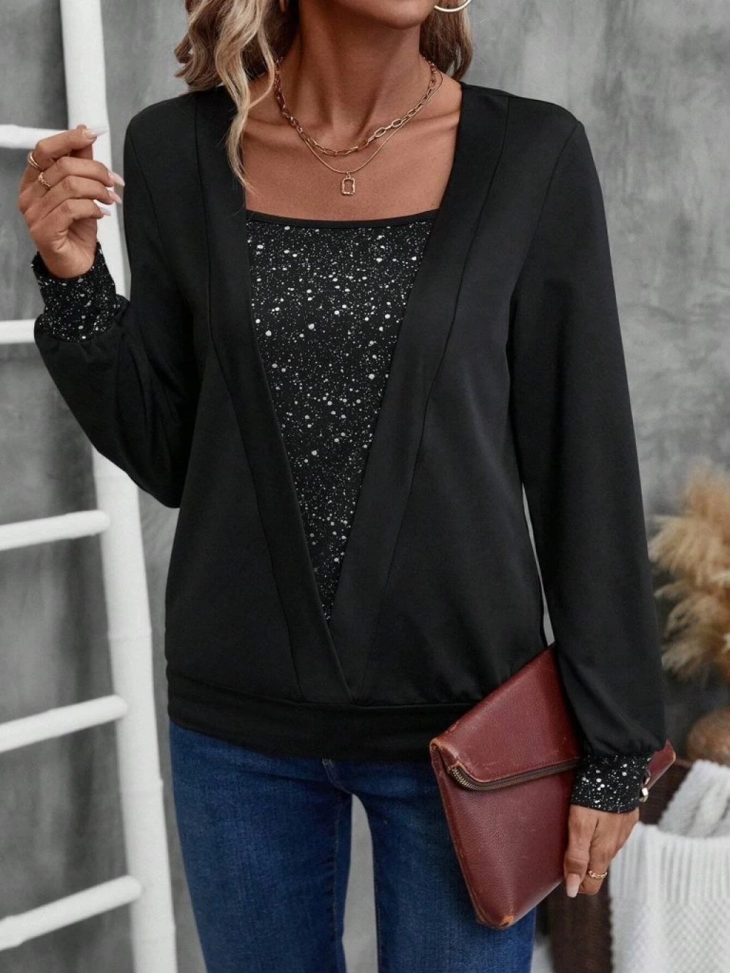 Kadın Uzun Kollu V Yakalı Içi Süprem Desenli Dışı Viskon Bluz