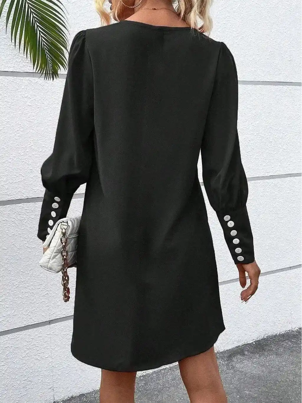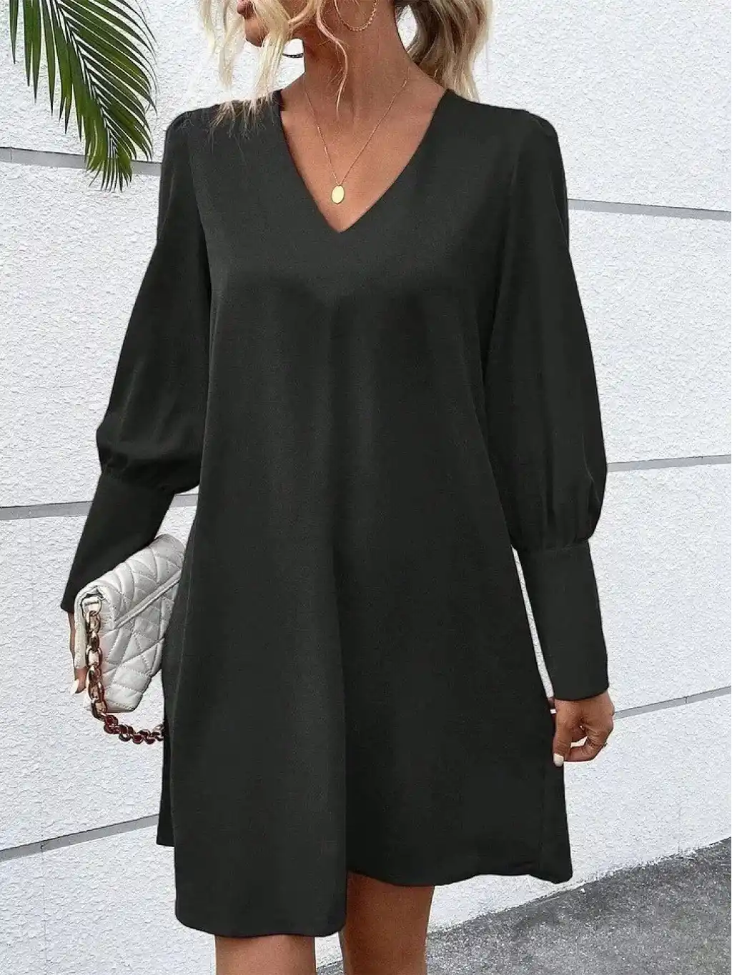 Kadın Uzun Kollu V Yakalı Kısa Ithal Krep Elbise