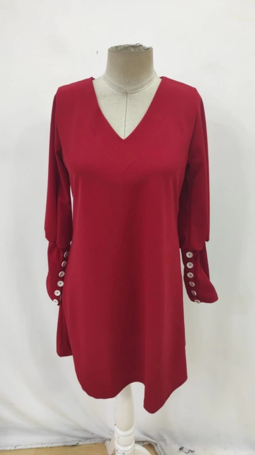 Kadın Uzun Kollu V Yakalı Kısa Ithal Krep Elbise