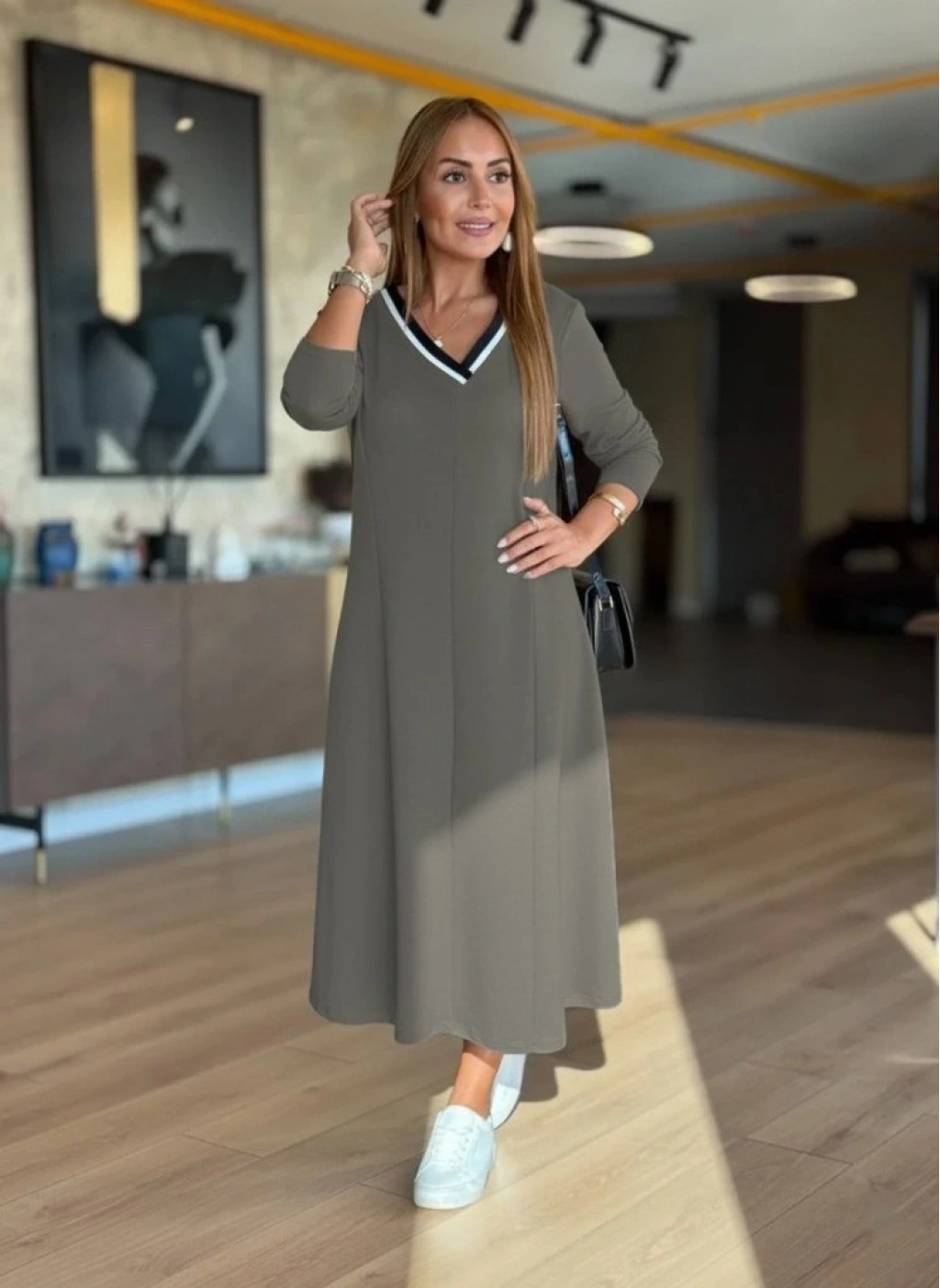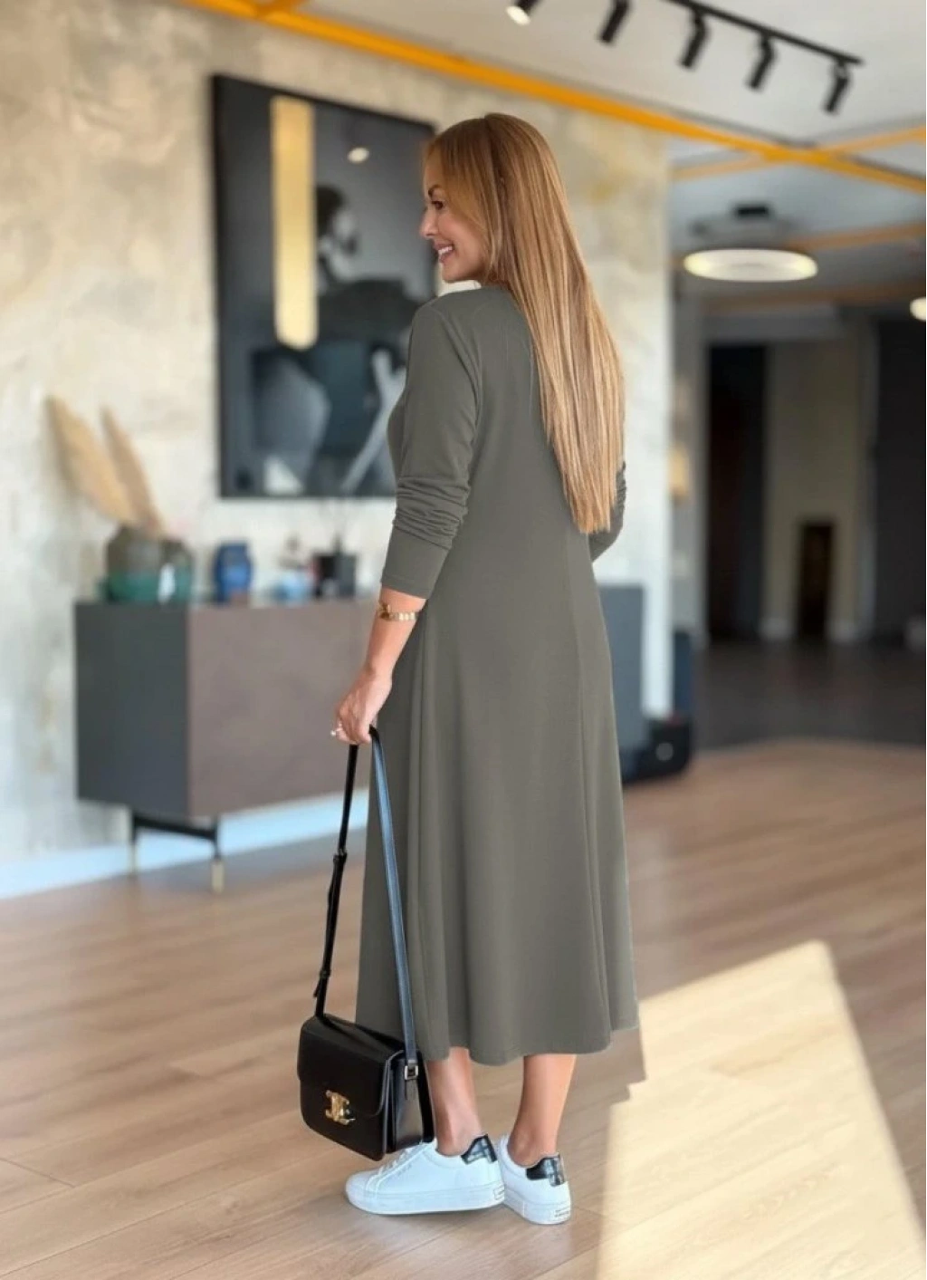 Kadın Uzun Kollu V Yakalı Midi çağla Yeşili Modal Elbise
