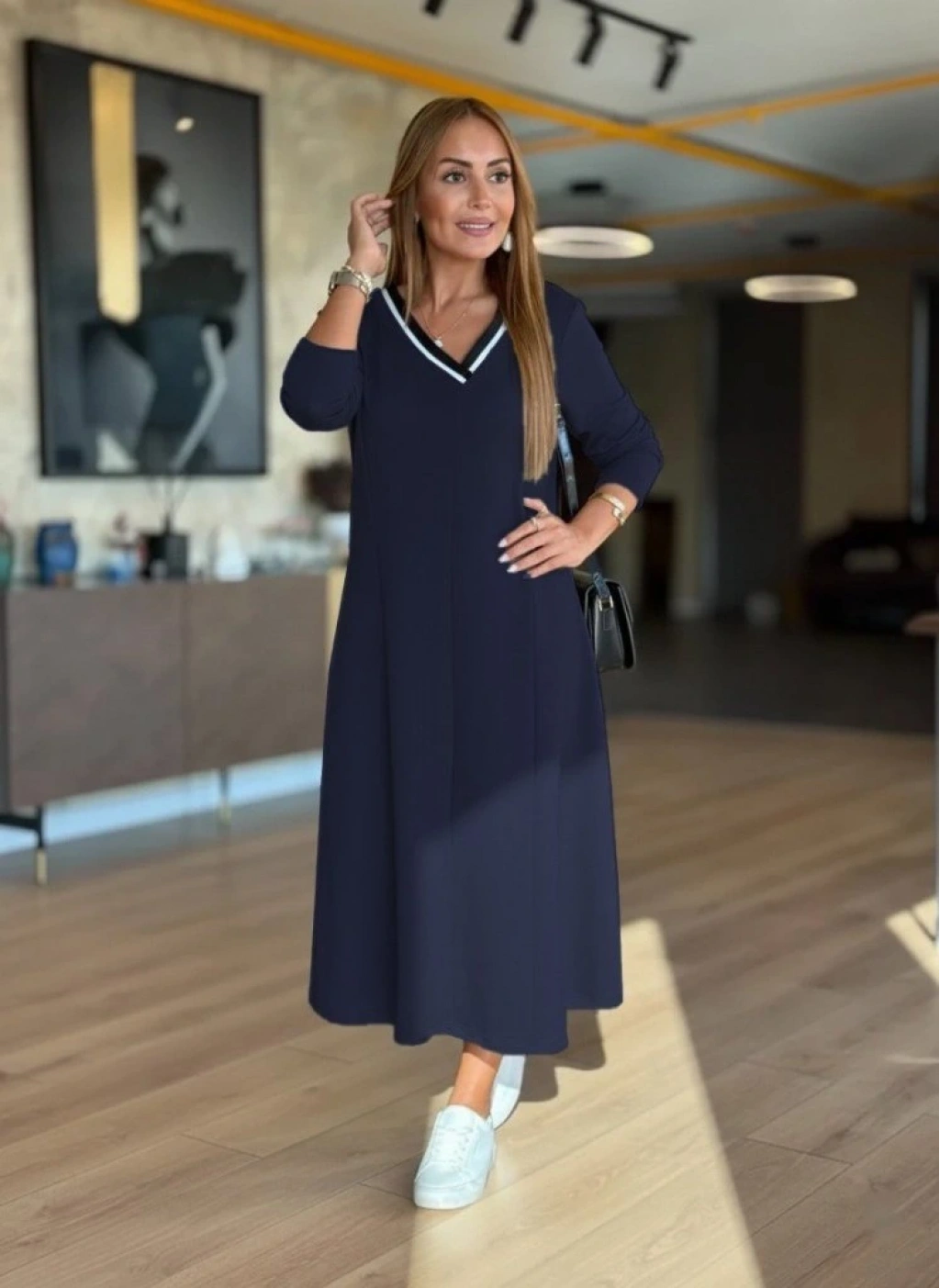 Kadın Uzun Kollu V Yakalı Midi Modal Elbise
