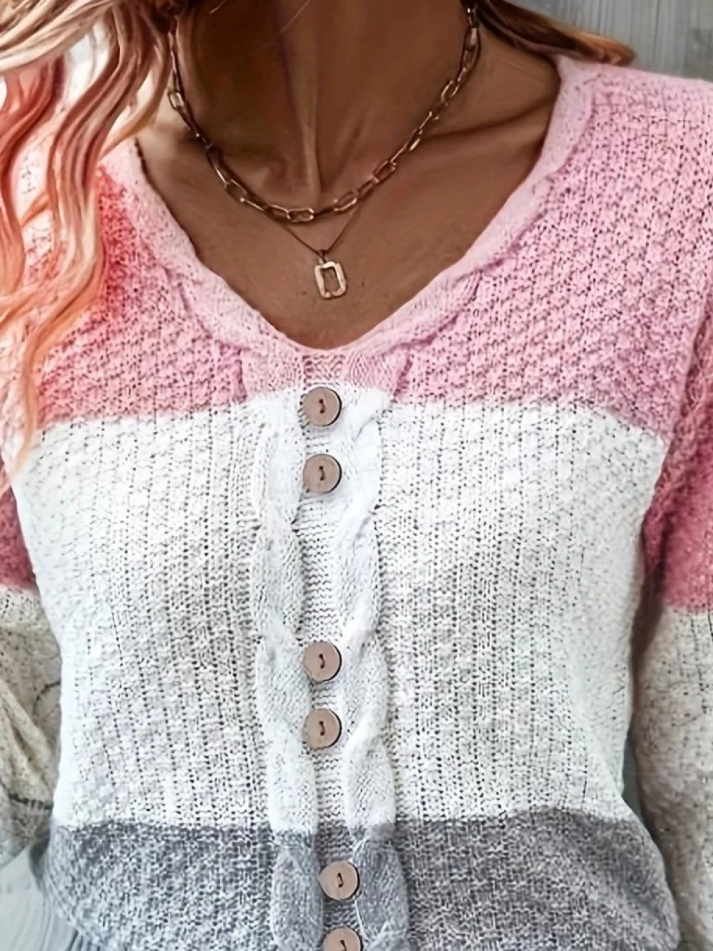 Kadın Uzun Kollu V Yakalı önden Düğmeli çok Renkli Bluz