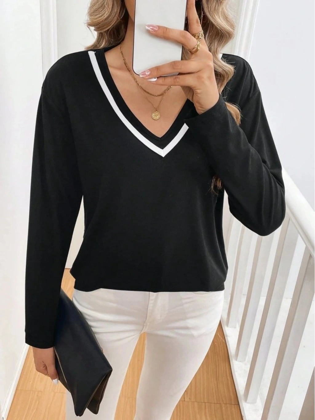 Kadın Uzun Kollu V Yakalı Viskon Iki Iplik Bluz