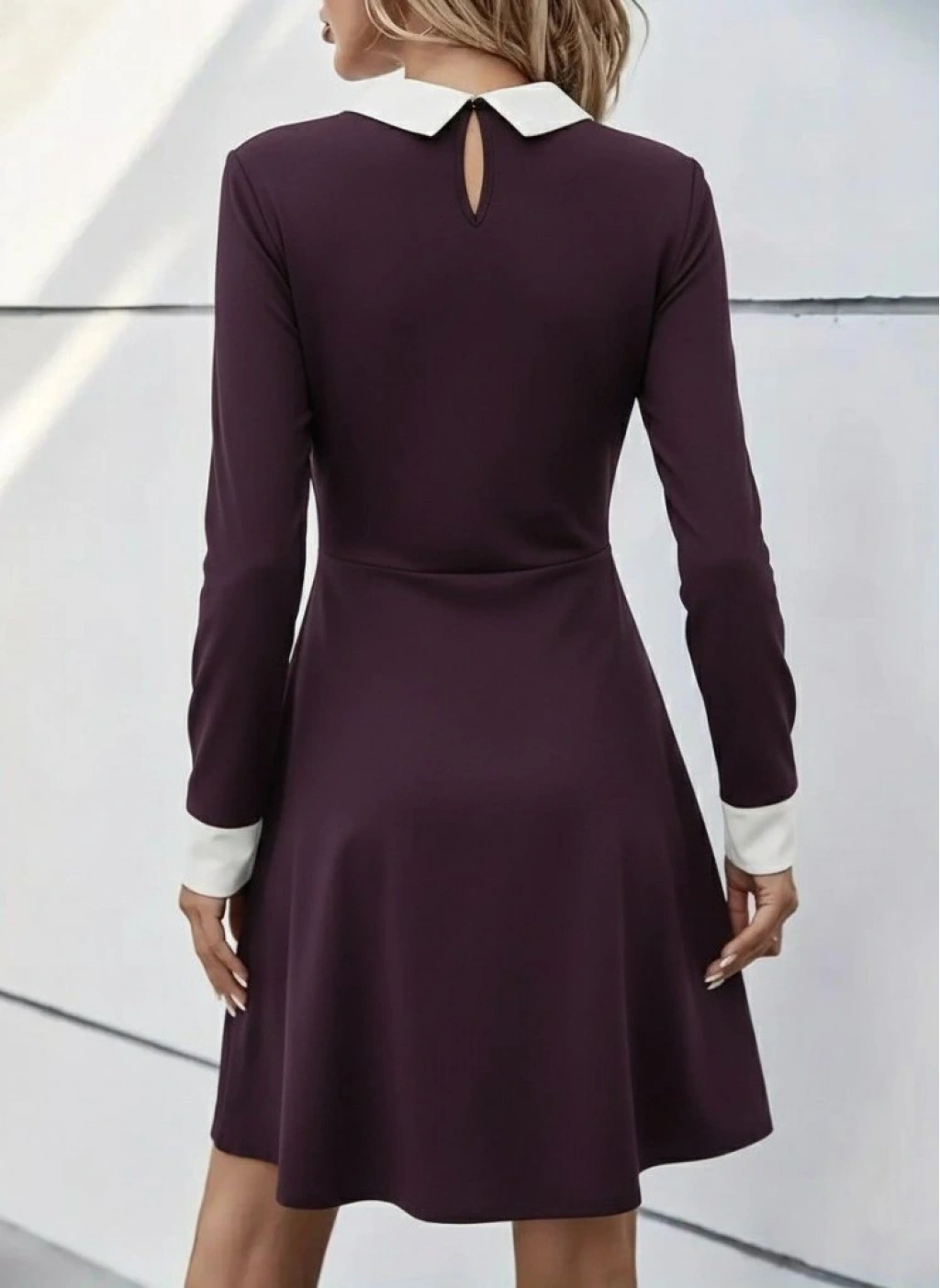 Kadın Uzun Kollu Yakalı Düğmeli Mürdüm Modal Mini Elbise
