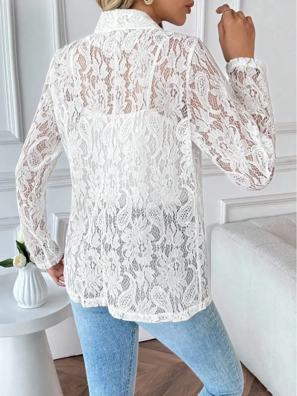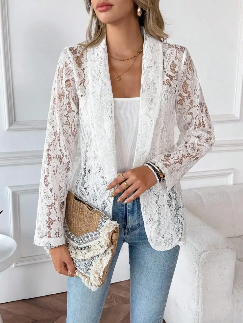 Kadın Uzun Kollu Yakalı önü Açık Dantelli Ceket
