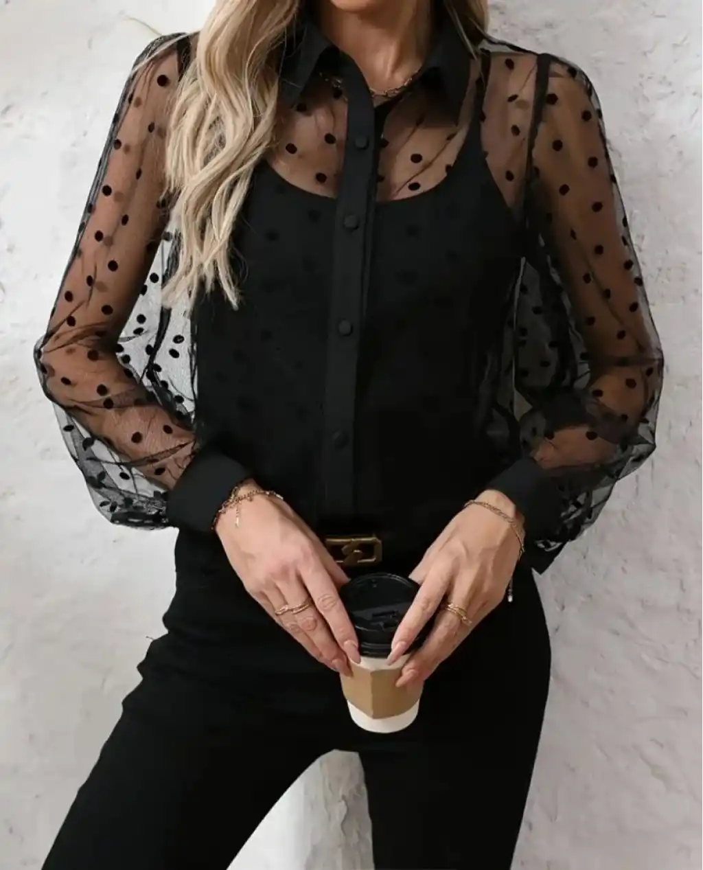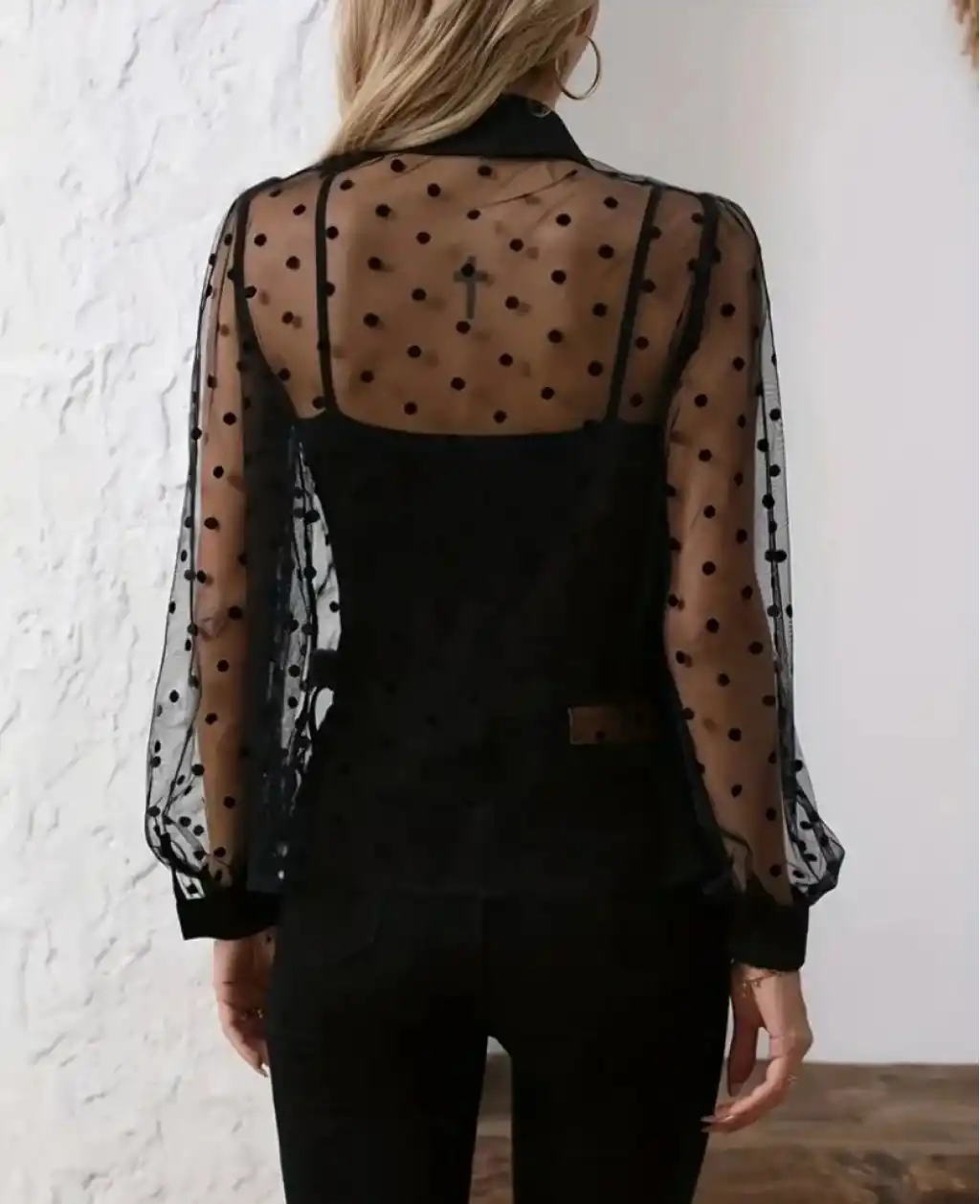Kadın Uzun Kollu Yakalı şeffaf Tül Detaylı Ve Viskon Atlet Ikili Takım