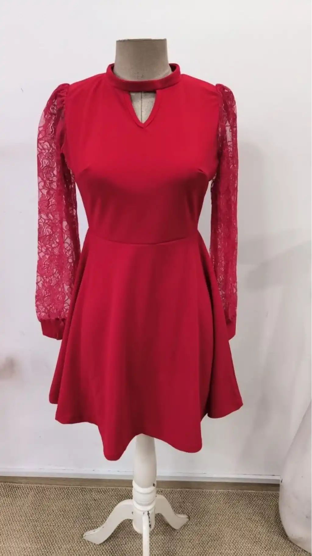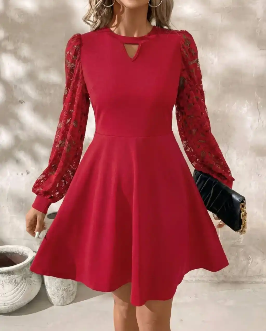 Kadın Uzun Kollu Yuvarlak Damla Detaylı Kolları Tül Detaylı Kısa Ithal Krep Elbise