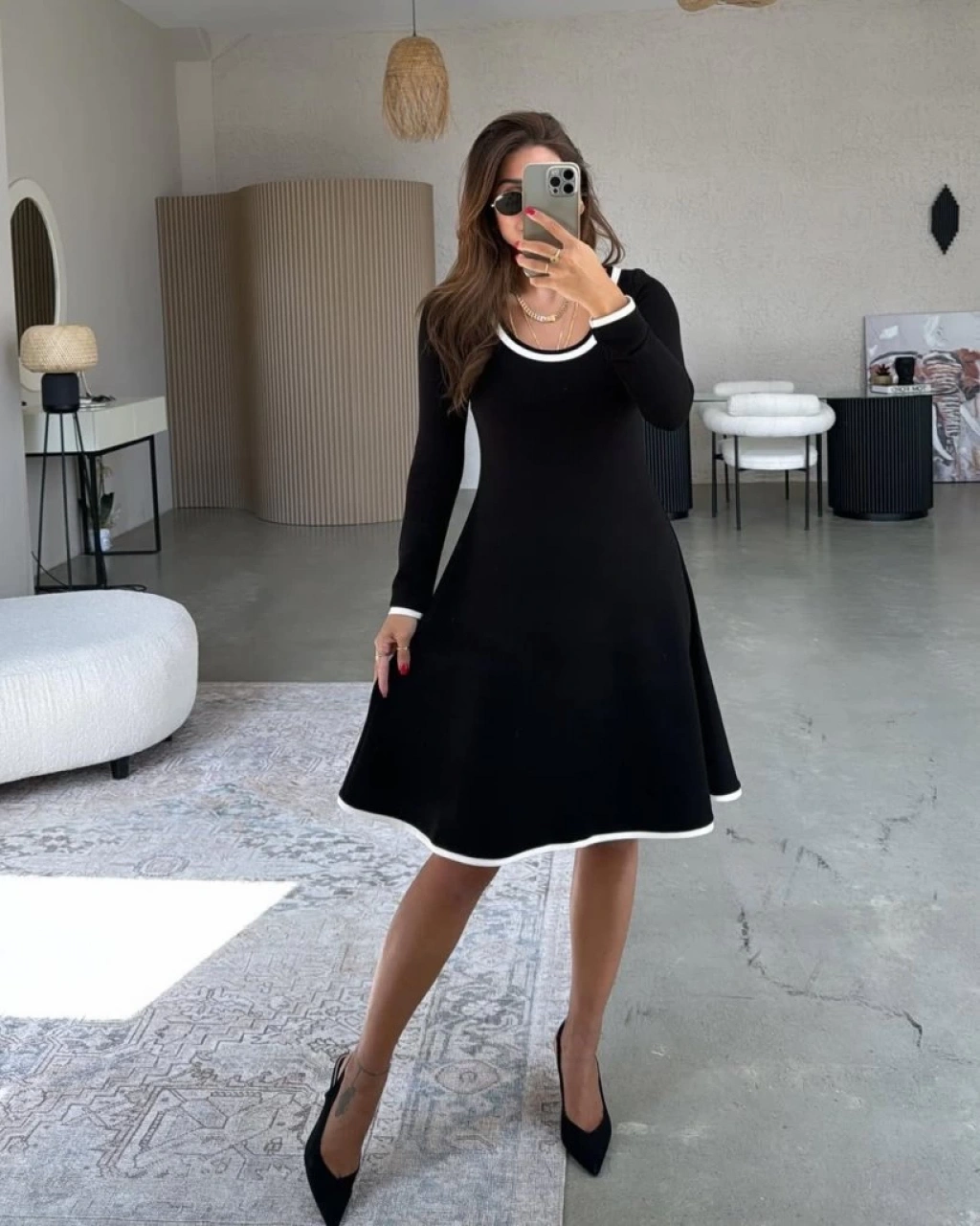 Kadın Uzun Kollu Yuvarlak Yaka Midi Viskon Iki Iplik Elbise