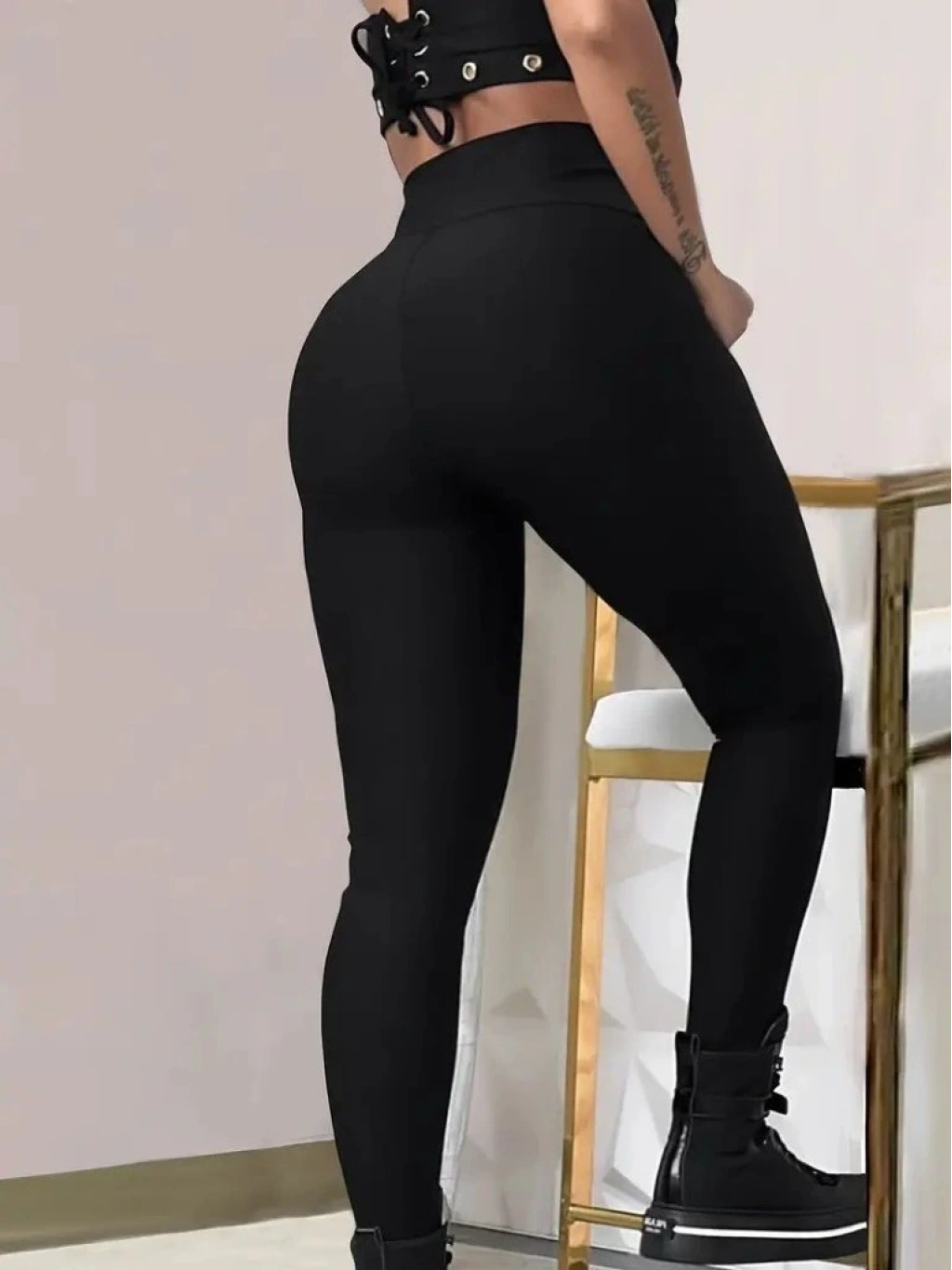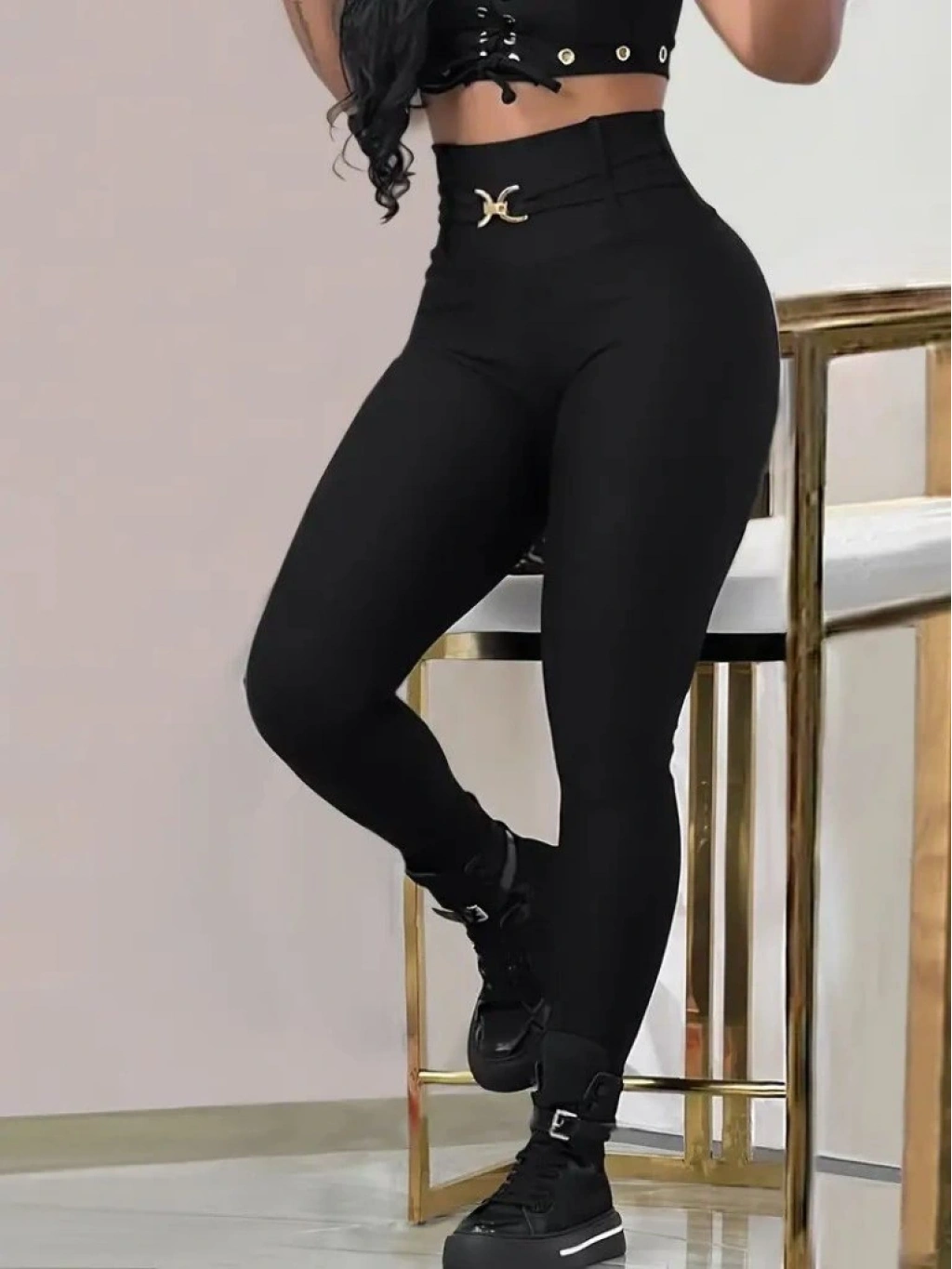 Kadın Yüksek Bel Belden Toka Detaylı Dalgıç Tayt