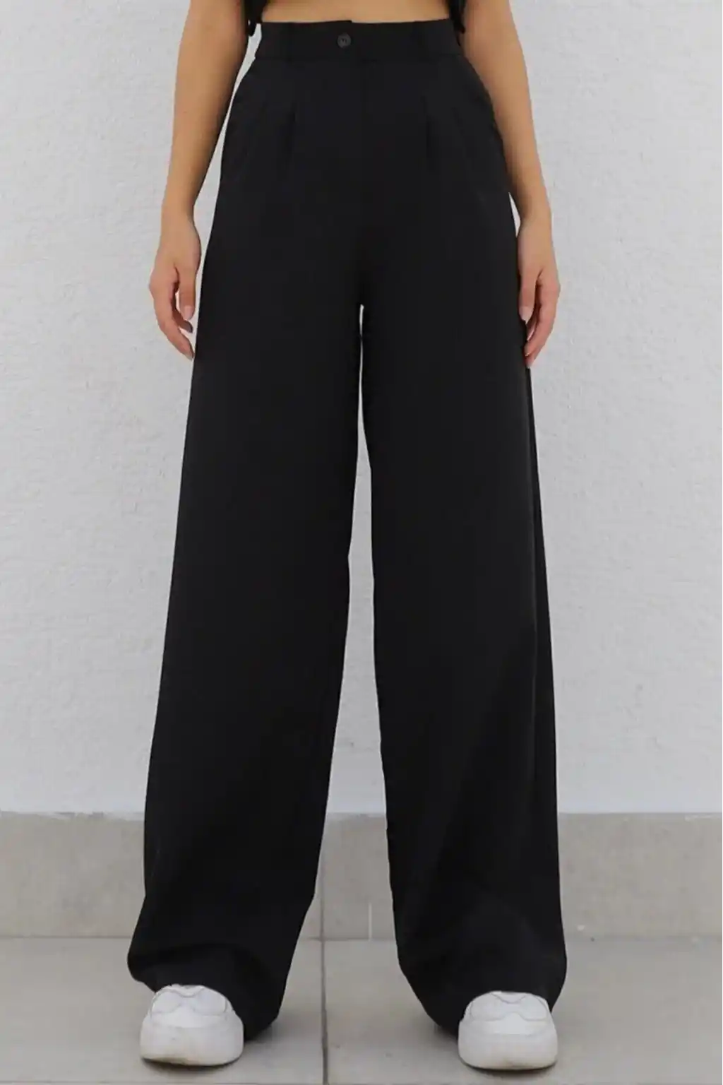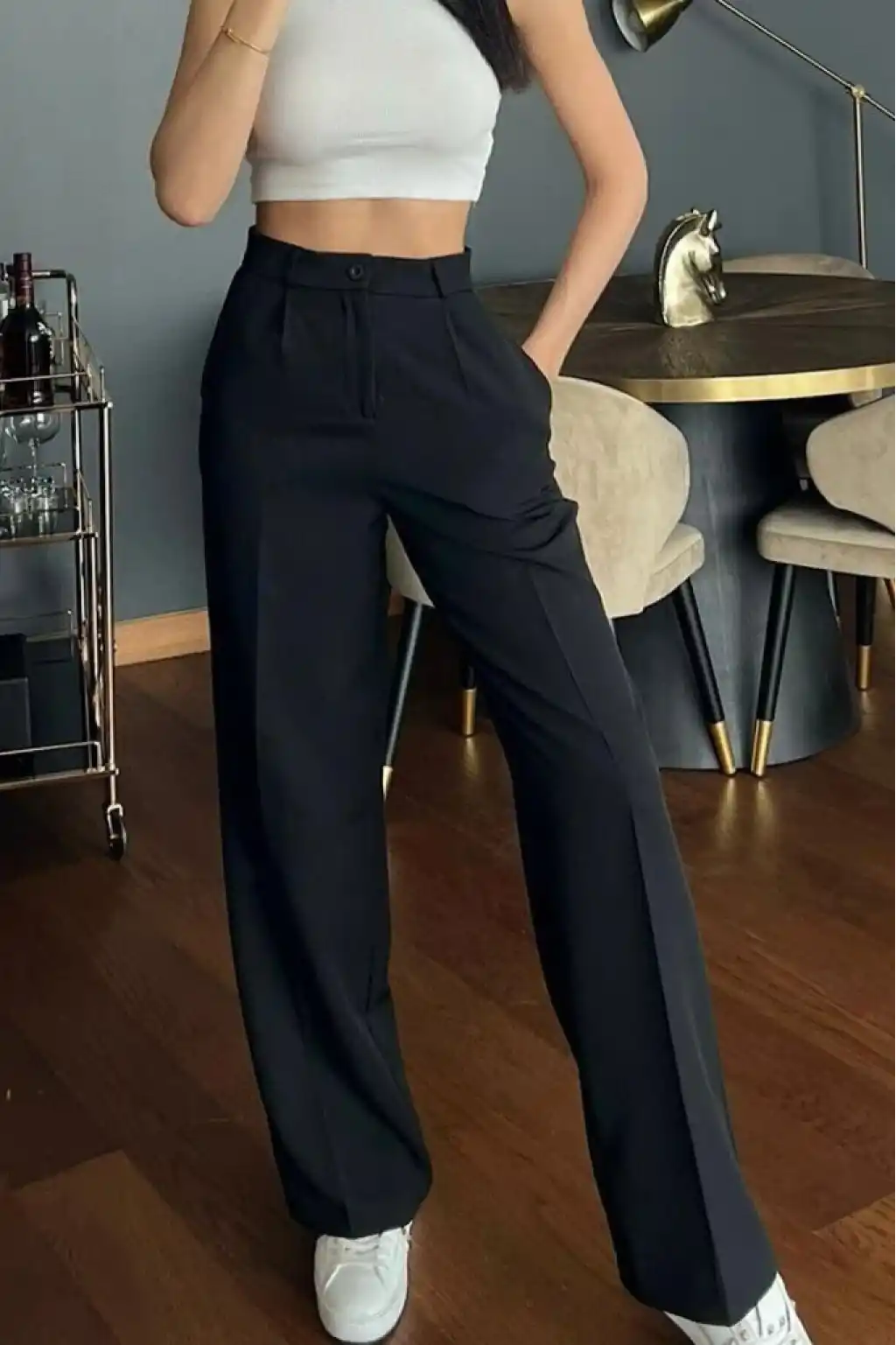 Kadın Yüksek Bel Cepli Ithal Krep Pantolon