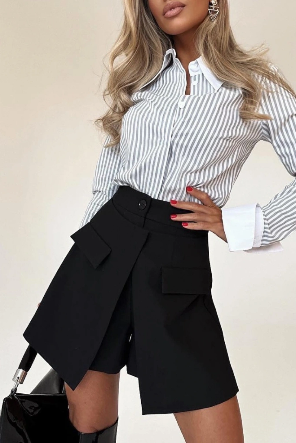 Kadın Yüksek Bel Düğmeli Asimetrik Kesim Cepli Kısa Ithal Krep şort Etek