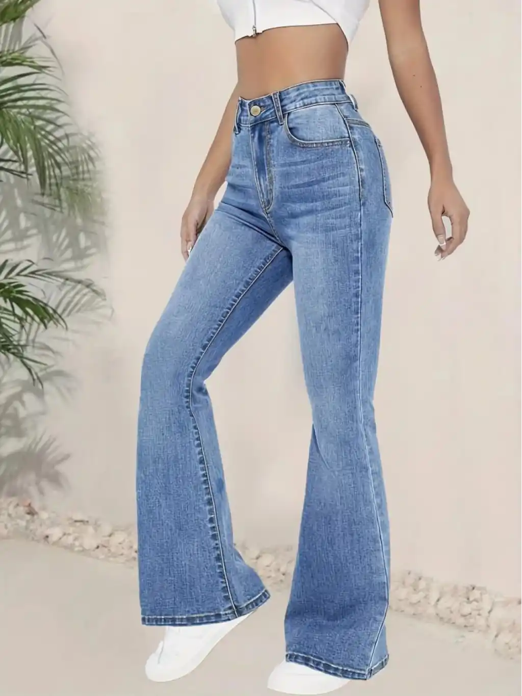 Kadın Yüksek Bel İspanyol Paça Kot Pantolon