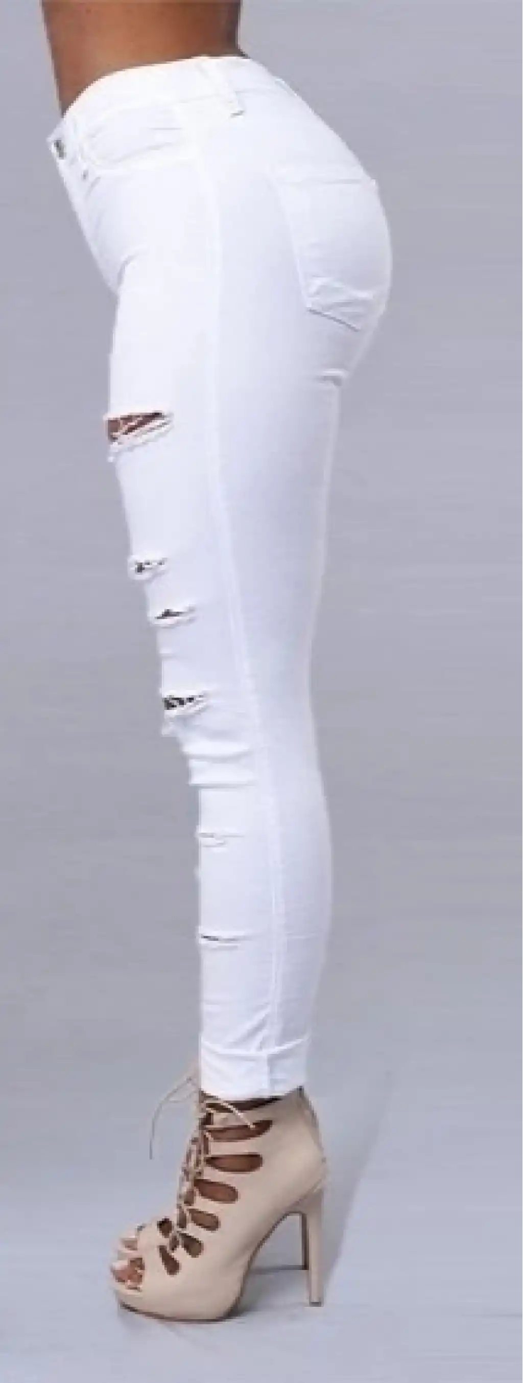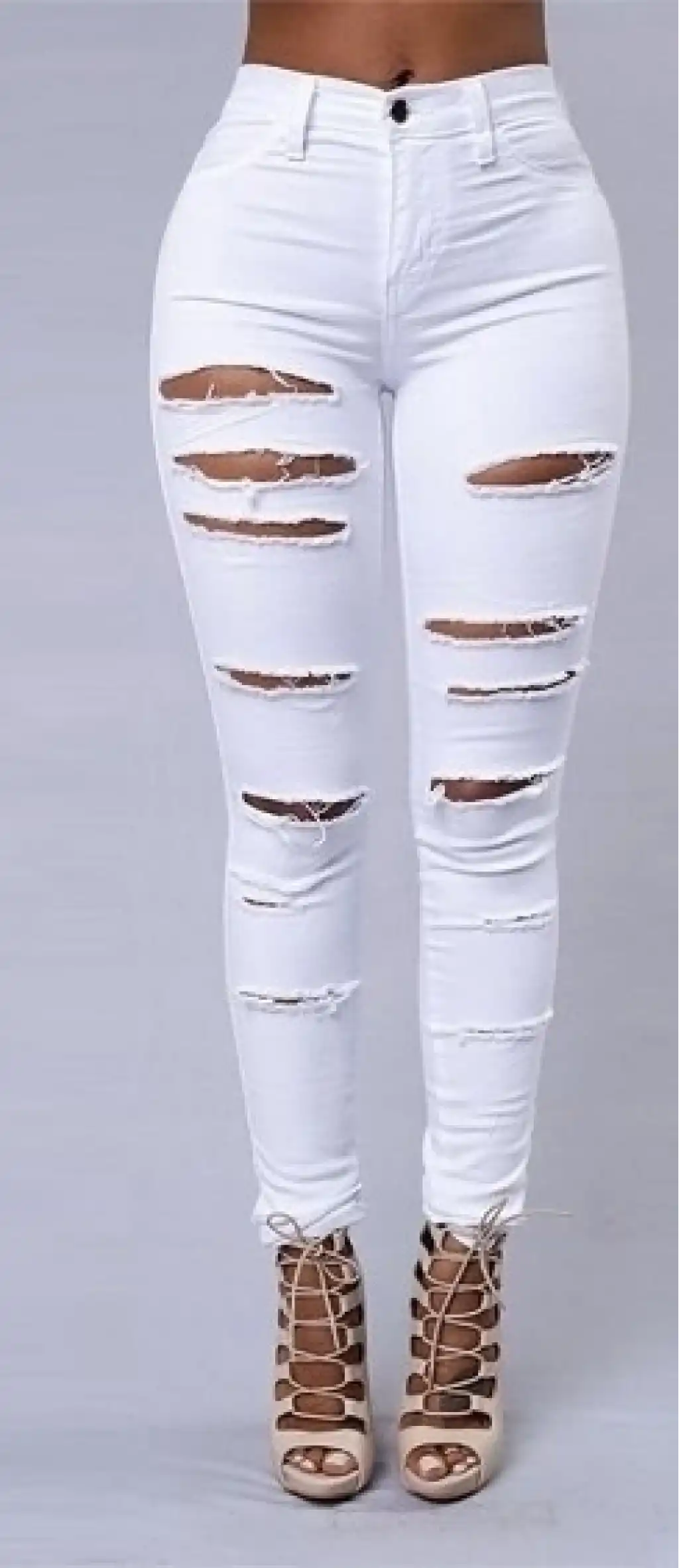 Kadın Yüksek Bel Lazer Yırtık Desenli Kot Pantolon