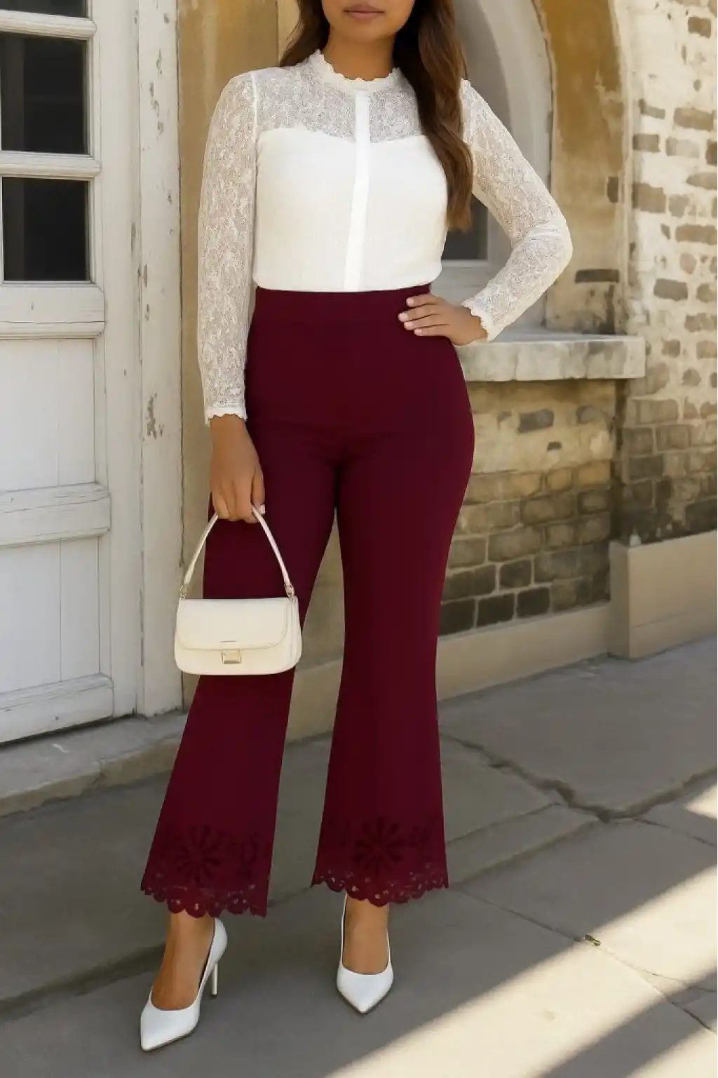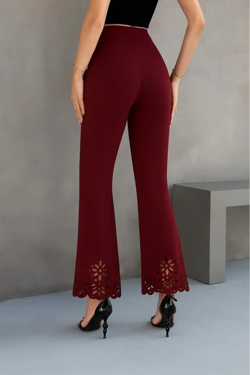 Kadın Yüksek Bel Paçaya Doğru Genişleyen Lazer çiçek Kesim Detaylı Ithal Krep Pantolon