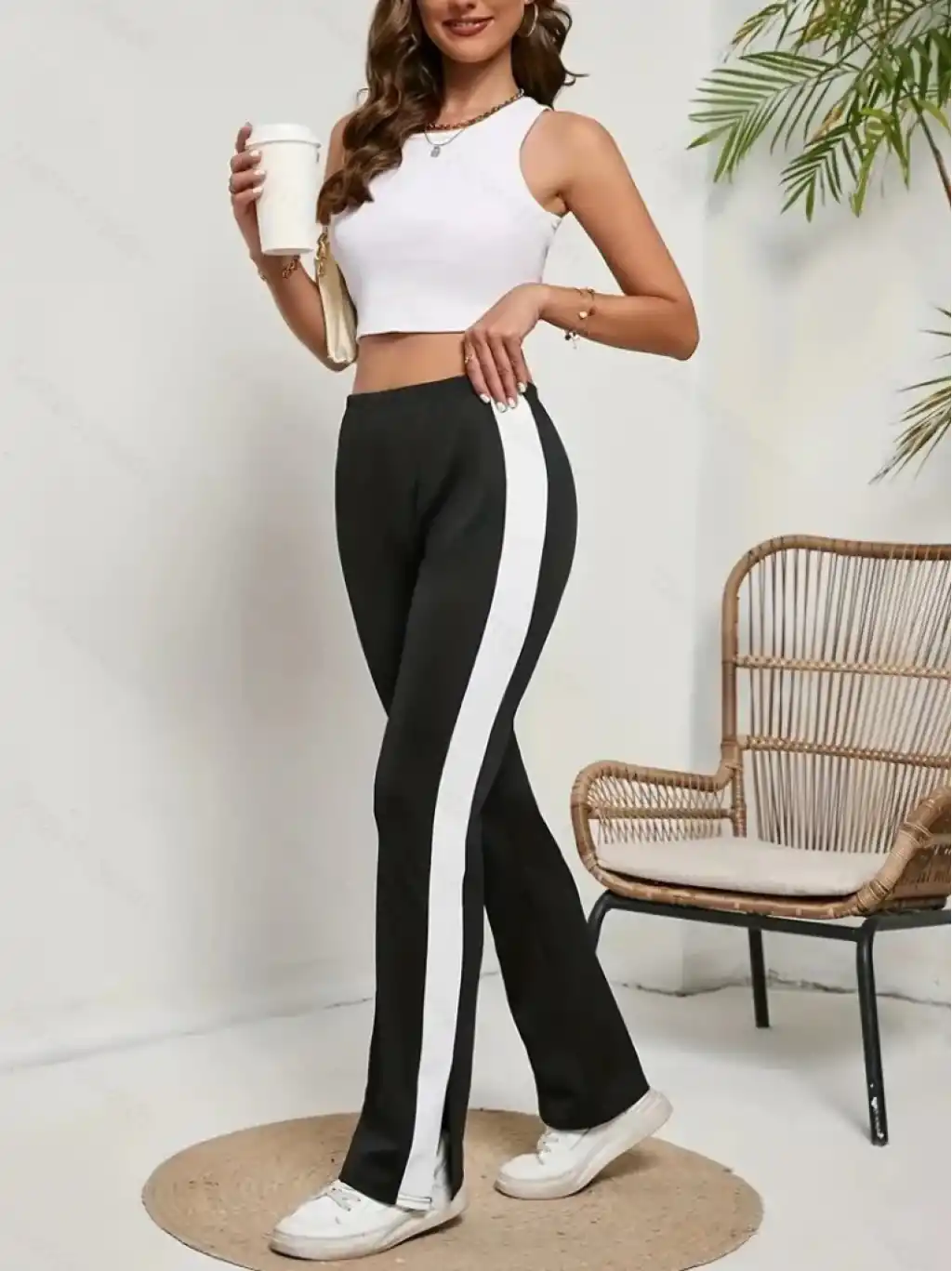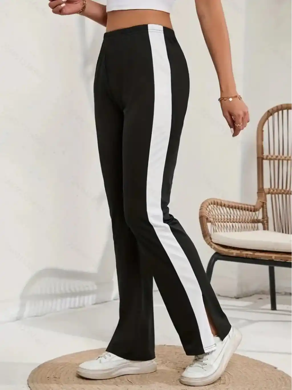Kadın Yüksek Bel Yan şerit Detaylı Yırtmaçlı Viskon Iki Iplik Pantolon