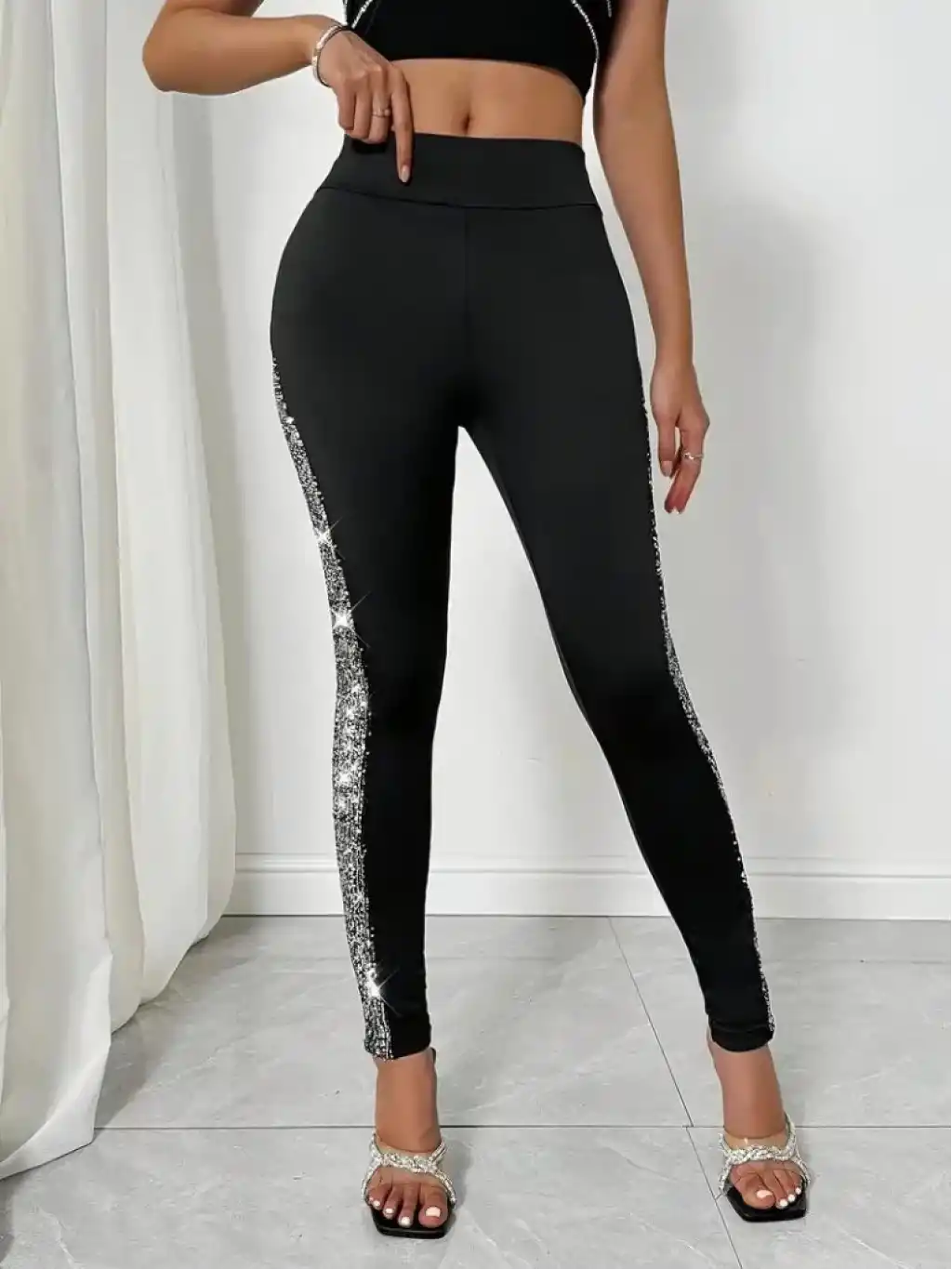 Kadın Yüksek Bel Yarı şerit Pul Payetli Dalgıç Tayt