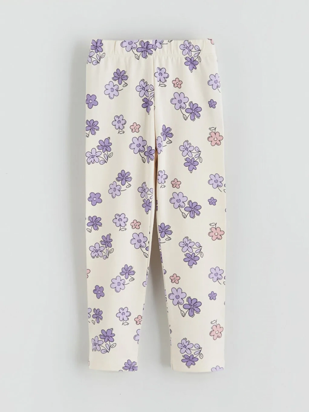 Kids Bej Çiçek Desenli Pamuklu Kız Çocuk Tayt 2'li