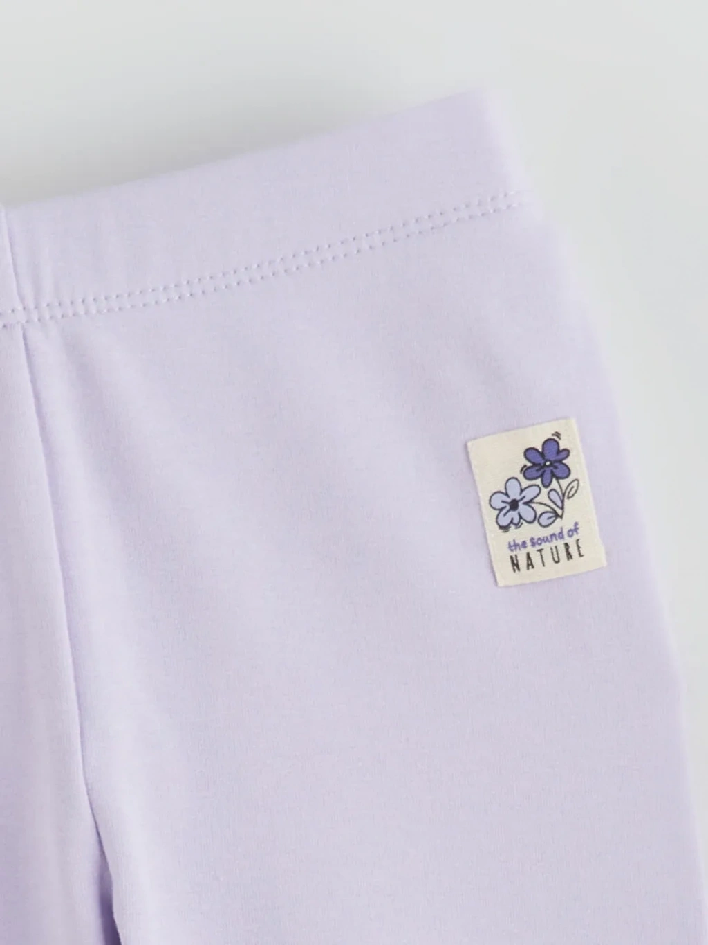 Kız çocuk için ikili tayt seti. Biri düz ve baskı detaylı, diğeri çiçek desenli iki adet uzun tayttan oluşur. Beli lastiklidir.
